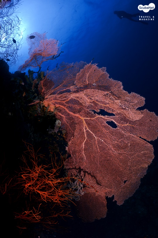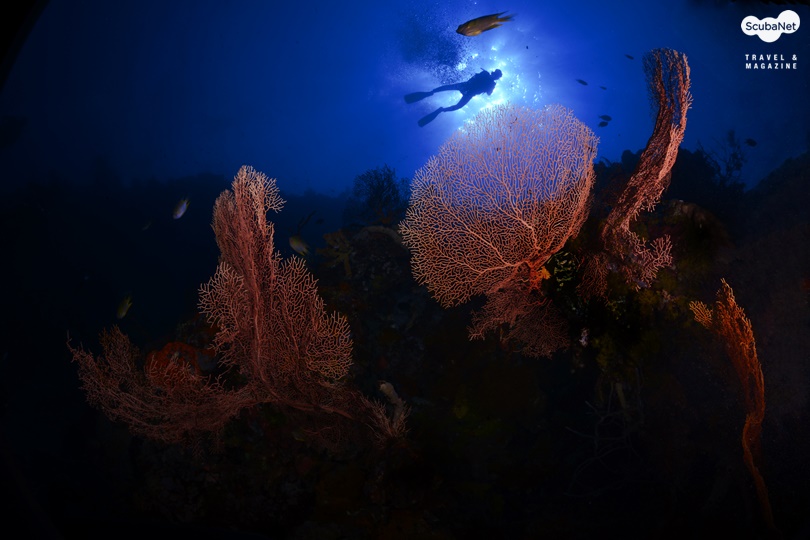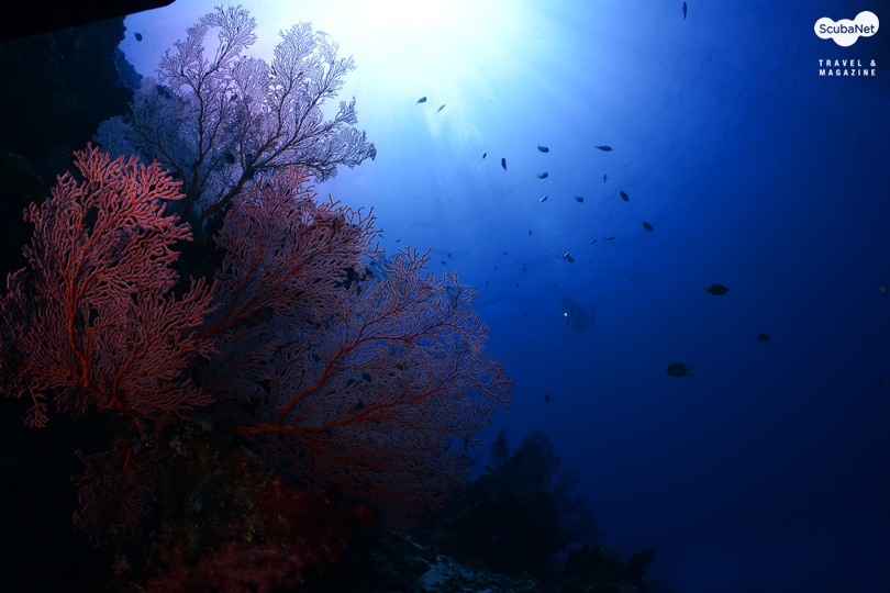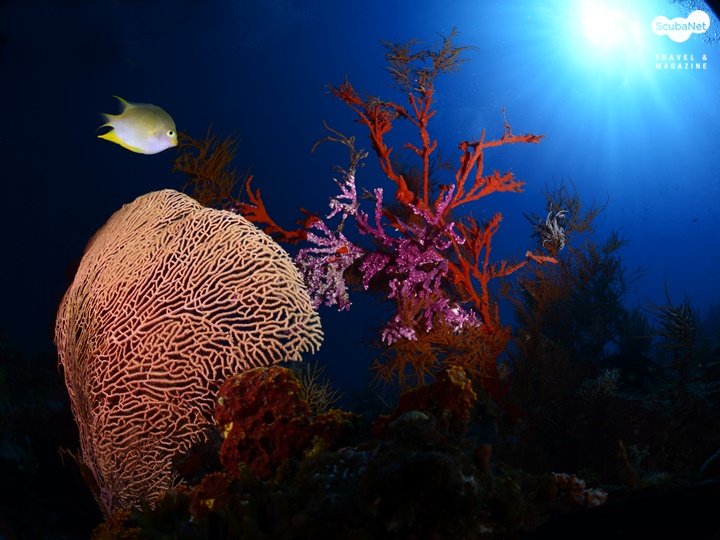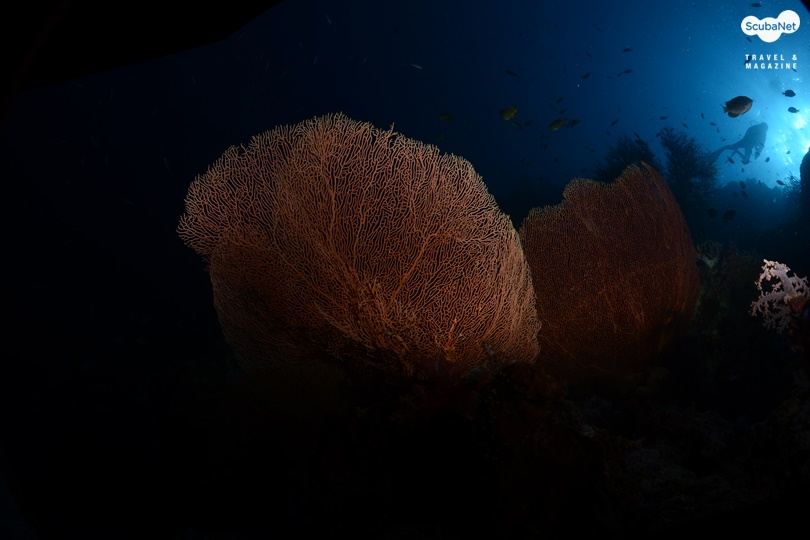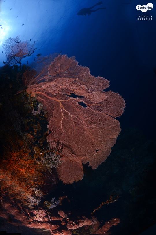 씨팬은 부채모양의 산호인데 씨팬 그 자체만을 촬영한다면 단순하여 그리 좋은 사진은 아닐 것이다. 피사체로써 씨팬을 선택할 시 주위와 비교하여 반사율이 높은 것이 좋고, 자연스러운