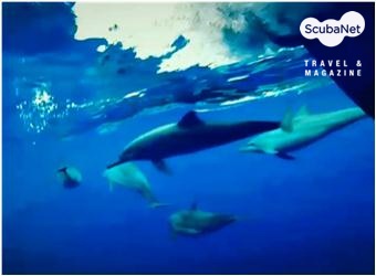 앞에 가고 있던 가이드가 돌핀 신호를 보내왔습니다. 갑자기 시야 왼쪽으로 돌고래 떼가 지나가고 있었습니다. 너무 빨라서 사진을 찍을 수도 없었고, 거리도 주지 않더군요. 그래서 다이빙을 마치고 보트로 올라온 뒤에 돌고래를 쫓아가는 동안 고프로로 수면 사진을 찍었습니다. 다이빙을 안 했으면 정말 후회했을 것입니다.