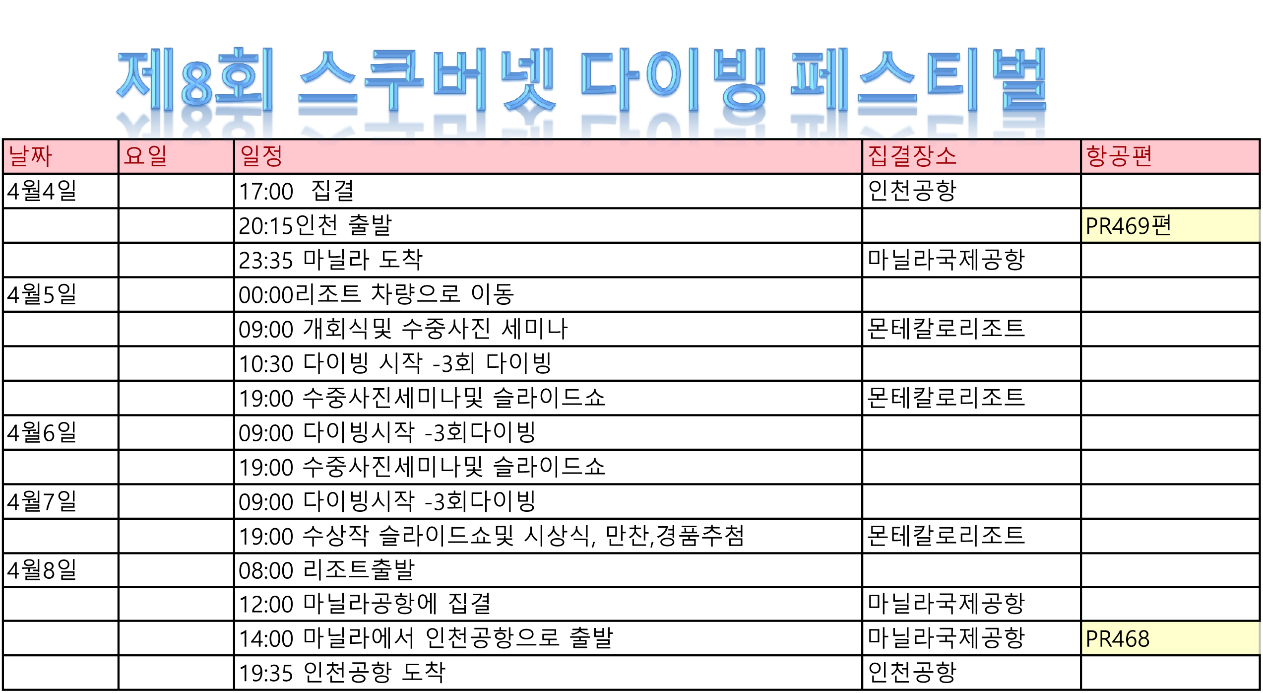 •포함사항: 항공, 공항픽업, 숙박, 다이빙 9회, 다이빙
