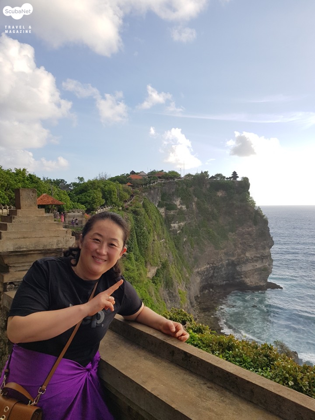 울루와뚜 절벽사원 산책로에서 기념사진을 촬영한 다이버