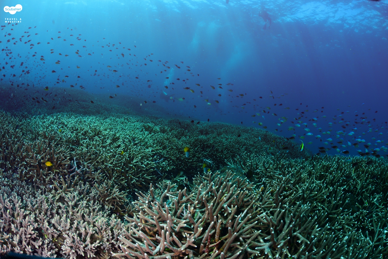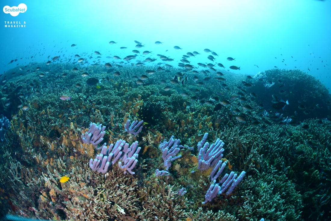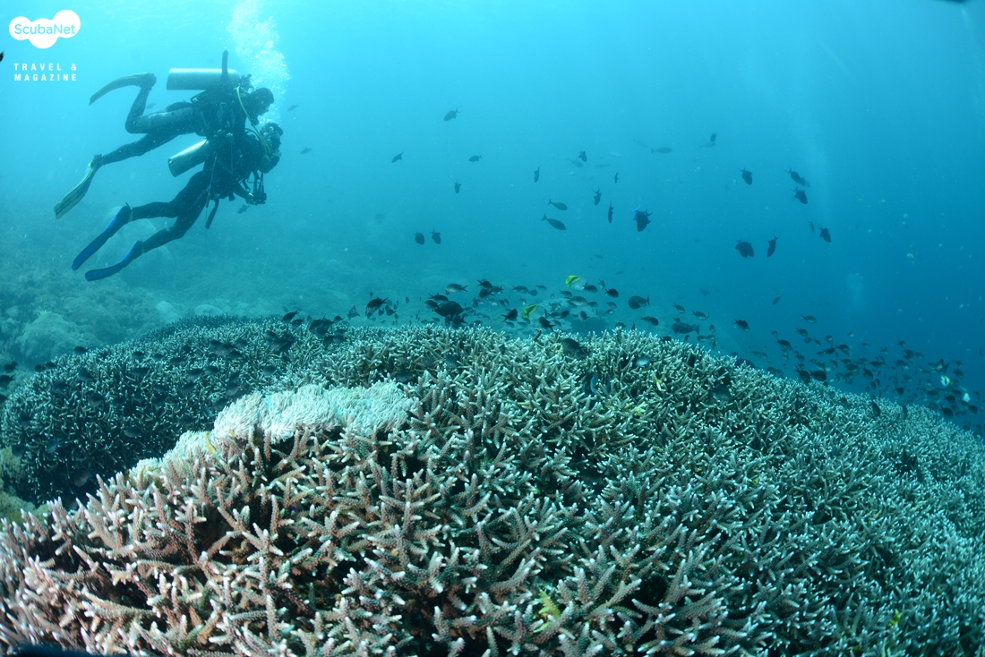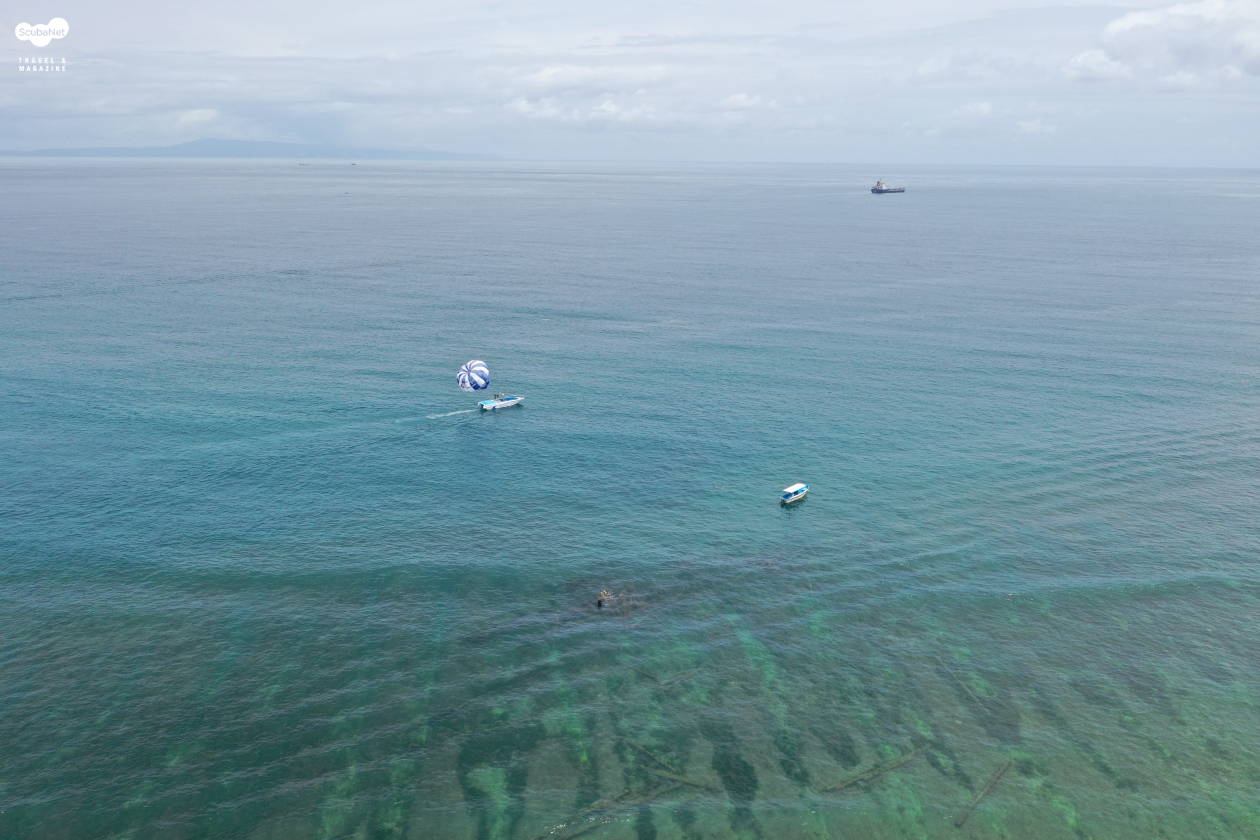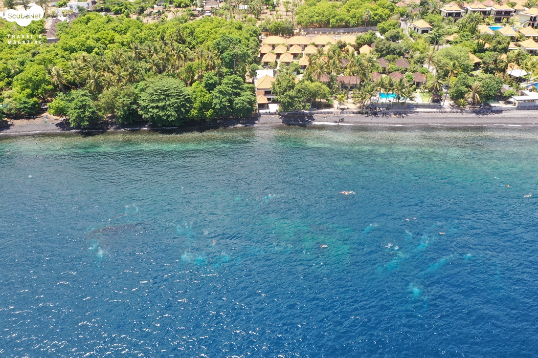 그렇게 조금 이동하니 해변 근처의 산호 봉우리 근처에 수많은 다이버들이 있었고, 그 위에 만타 두 마리가 돌고 있었다. 수면에서는 스노클러들이 만타를 구경하고 있었다.