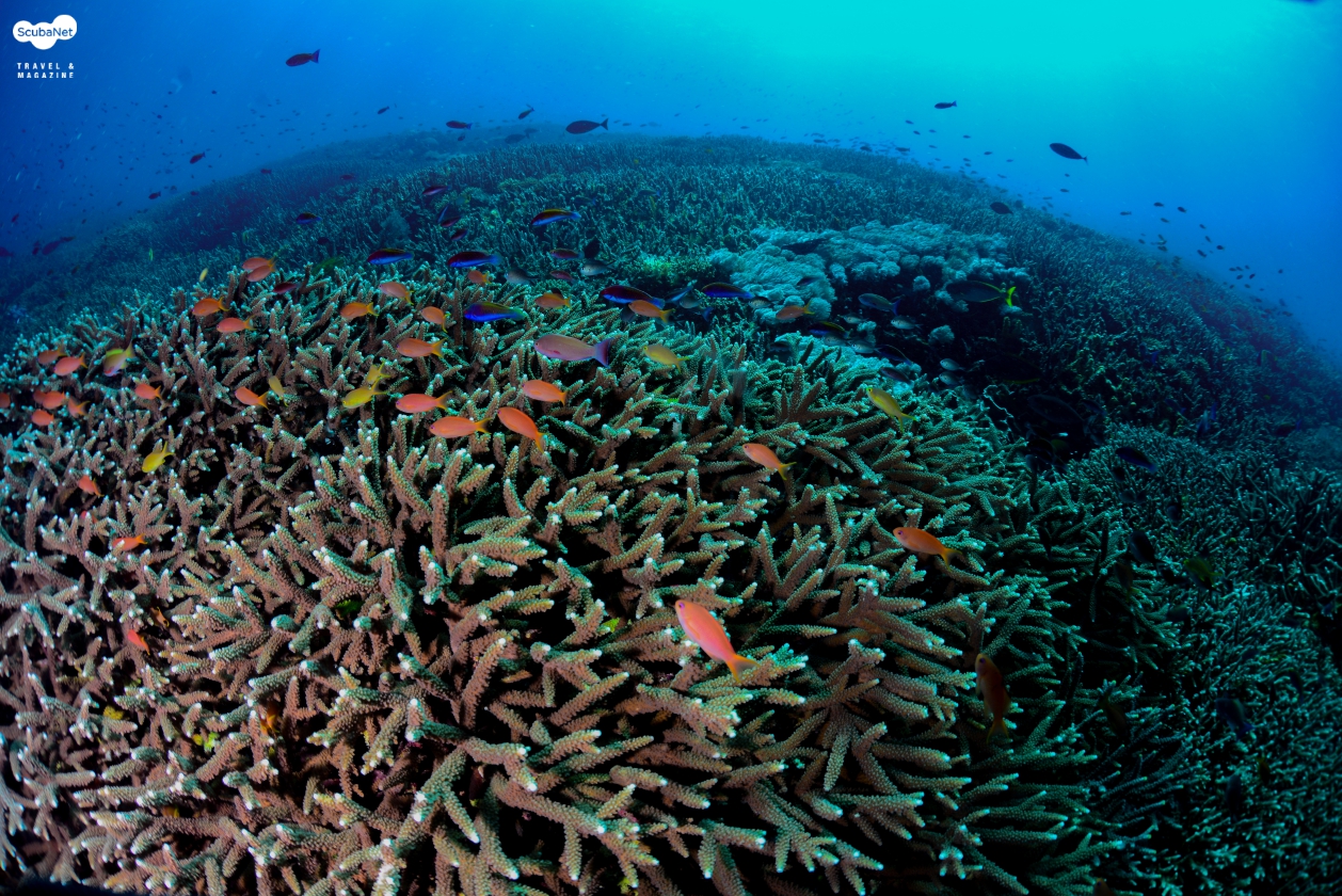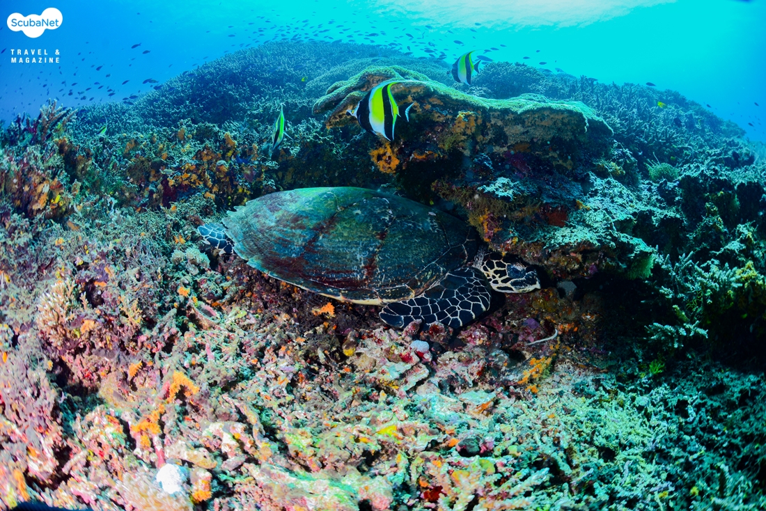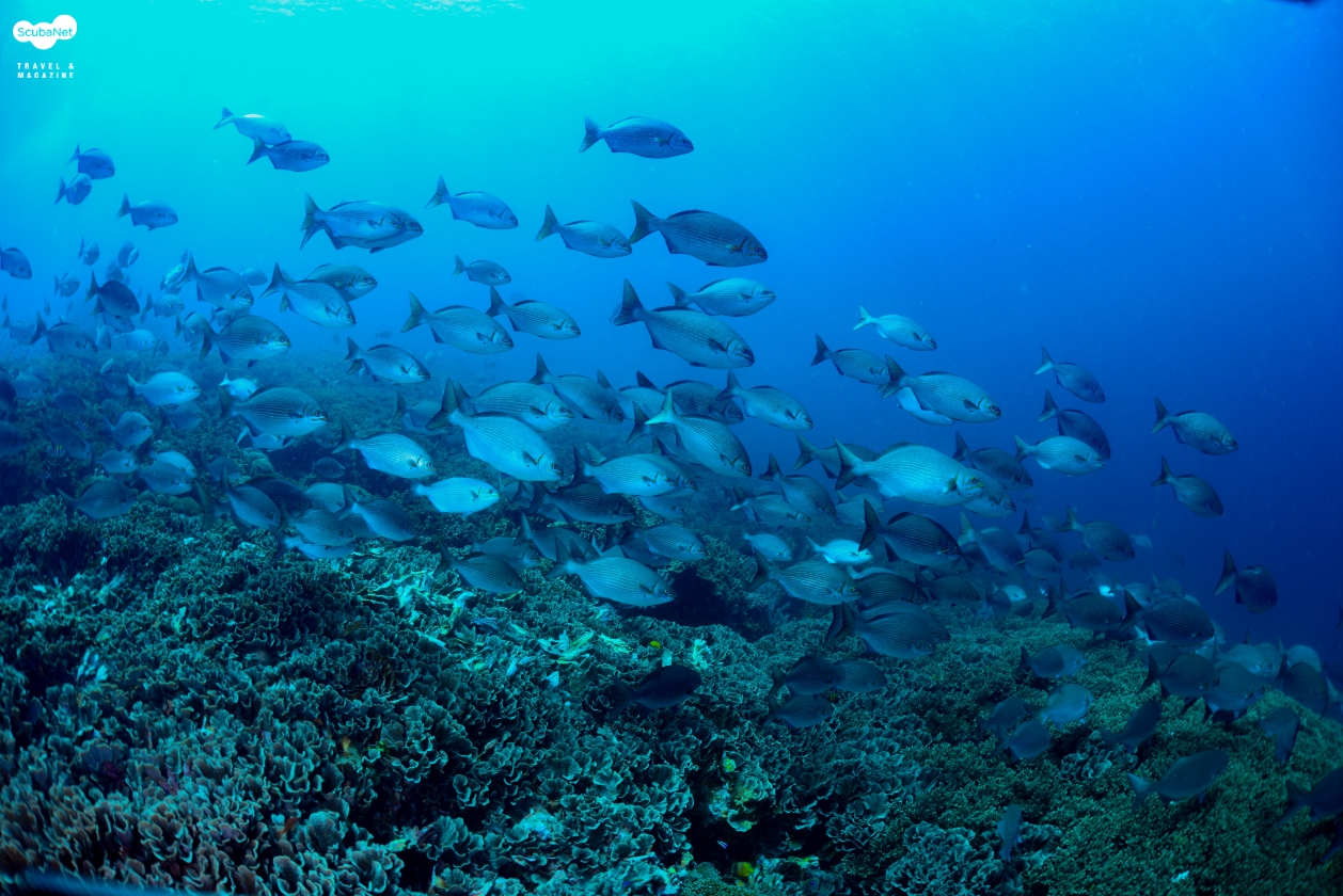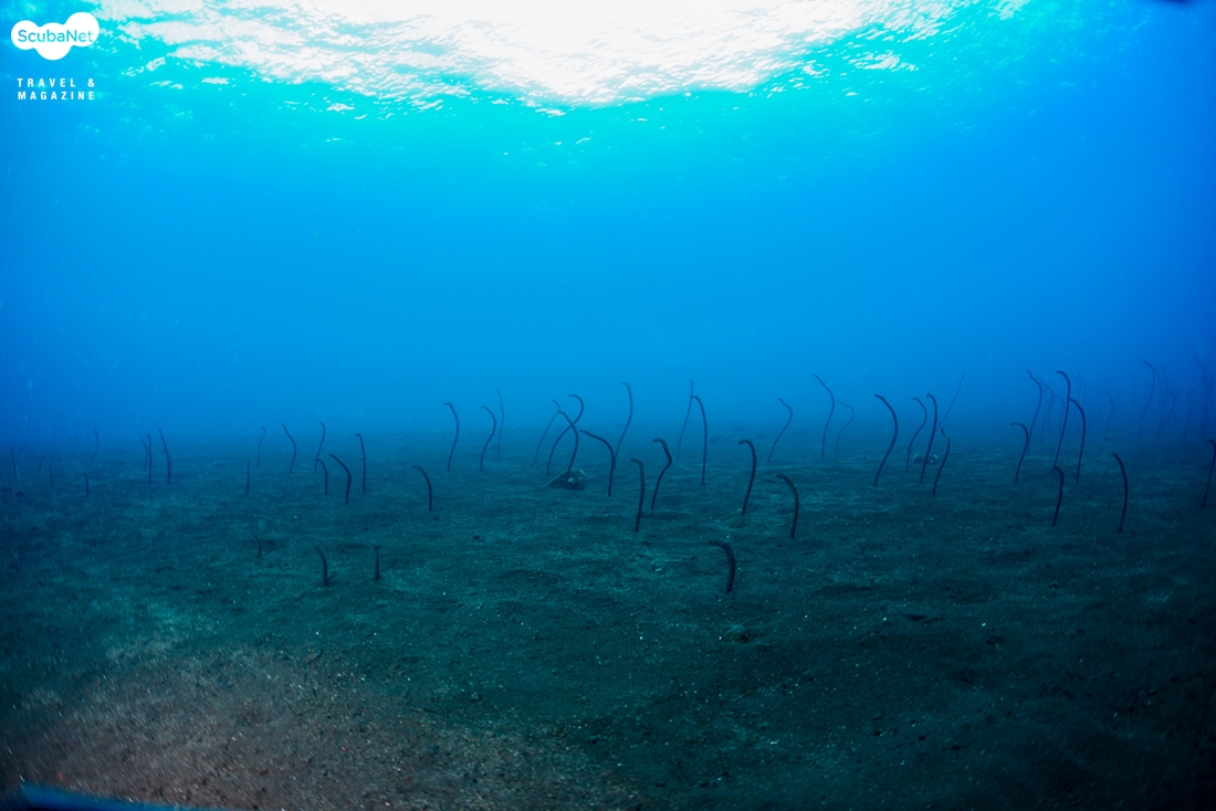 그렇게 조금 이동하니 해변 근처의 산호 봉우리 근처에 수많은 다이버들이 있었고, 그 위에 만타 두 마리가 돌고 있었다. 수면에서는 스노클러들이 만타를 구경하고 있었다.