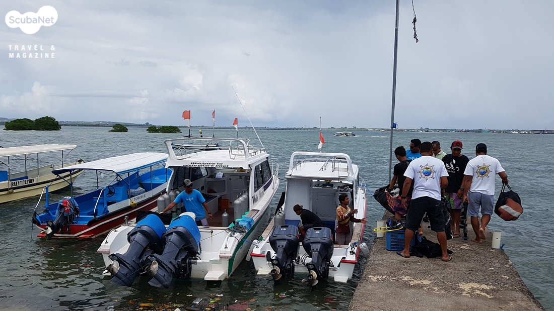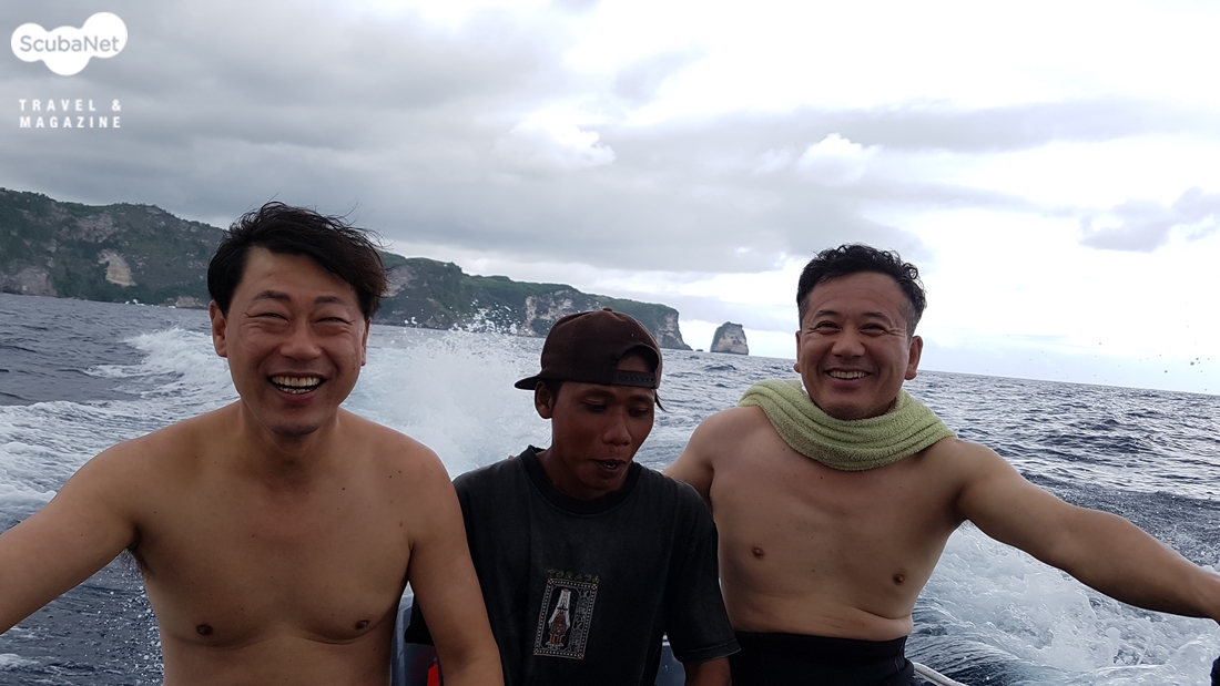 누사 페니다 섬 드리프트 다이빙자정을 넘겨서 발리에 도착하여 리조트로 이동해서 야식을 먹고 잠이 든 시간은 새벽 3시가 넘었고, 오전 9시 다이빙 출발을 위해 8시에는 일어나 조식을 먹어야 했다. 다이빙 장비는 첫날에 호텔 로비에서 컨테이너에 담아 주면 다이브 가이드들이 챙겨서 다이빙 보트와 현장까지 옮겨주었기에 다이버들은 레쉬가드와 반바지 등의 가벼운 차림으로 카메라와 다이브컴퓨터, 휴대폰 등 개인 소지품들만 챙기면 되었다. 다이빙 보트는 숙소에서 차량으로5분 거리에 있는 탄중 베노아 해변에서 대기하고 있었다. 12명의 일행 중에 10명의 다이버와 4명의 다이브 가이드가 보트 2대에 나누어 탑승하고 누사 페니다로 출발했다. 김구 강사와 정웅이 마스터를 제외하면 대부분의 다이버들이 로그수 10회 내외의 오픈워터 다이버들이었다. 하지만 가이드가 4명이나 있었기에 부담은 없었고, 체크 다이빙도 핀킥을 하나도 하지 않아도 되는 드리프트 다이빙으로 진행되었다. 경험 많은 가이드들이라 초보자들을 잘 이끌어 주었다.