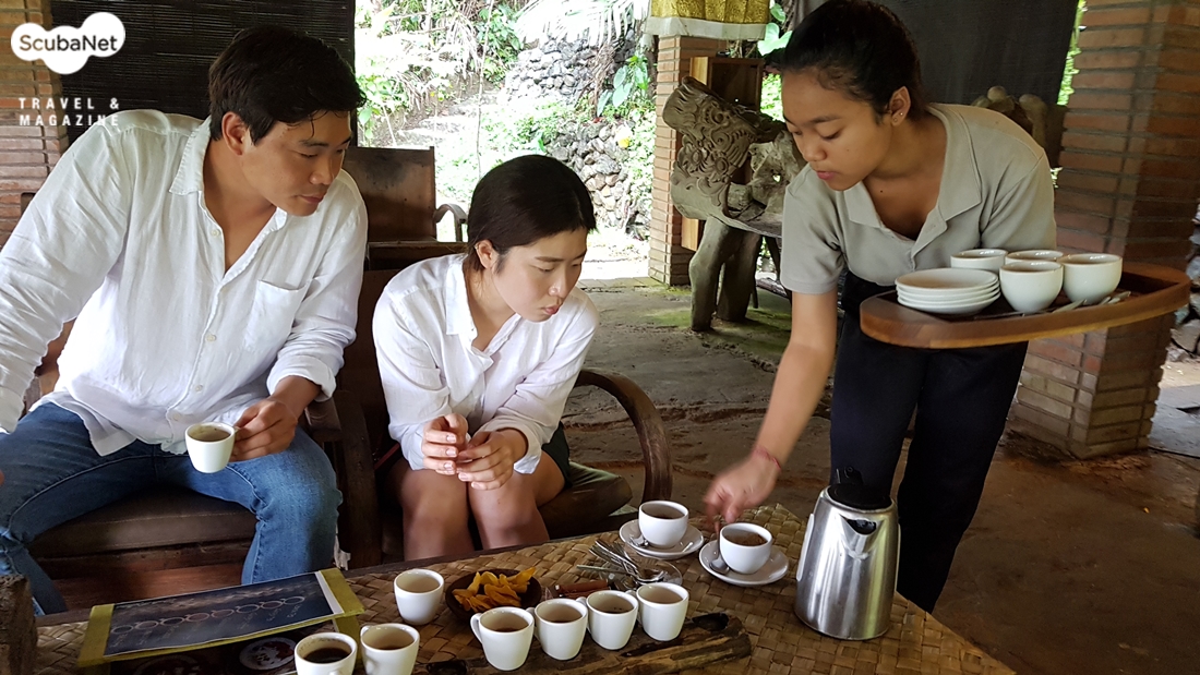 우붓에서 제대로 된 커피 농장을 가자고 하여 발리 풀리나 Bali Pulina를 찾았다. 발리의 볼거리 중의 하나인 라이스 테라스 Rice Terrace를 지났는데 강이 흐르는 급격한 경사의 계곡 양쪽으로 계단식 논들이 있었다. 발리 풀리나는 경사진 언덕 위에 있어서 건너편의 풀빌라와 계곡을 바라보는 경치가 좋았고, 그네 Swing와 집라인 등의 체험도 할 수 있는 곳이었다. 우리 일행들은 전망 좋은 곳에 앉아 시음용 커피와 차를 맛보면서 루왁커피도 시켜서 마셔보았다. 개인적으로 사향고향이를 사육하여 만들어내는 루왁커피를 좋아하지는 않지만 많은 사람들이 루왁을 맛보고 구매하기 위해 발리의 커피 농장을 찾는 듯 했다.