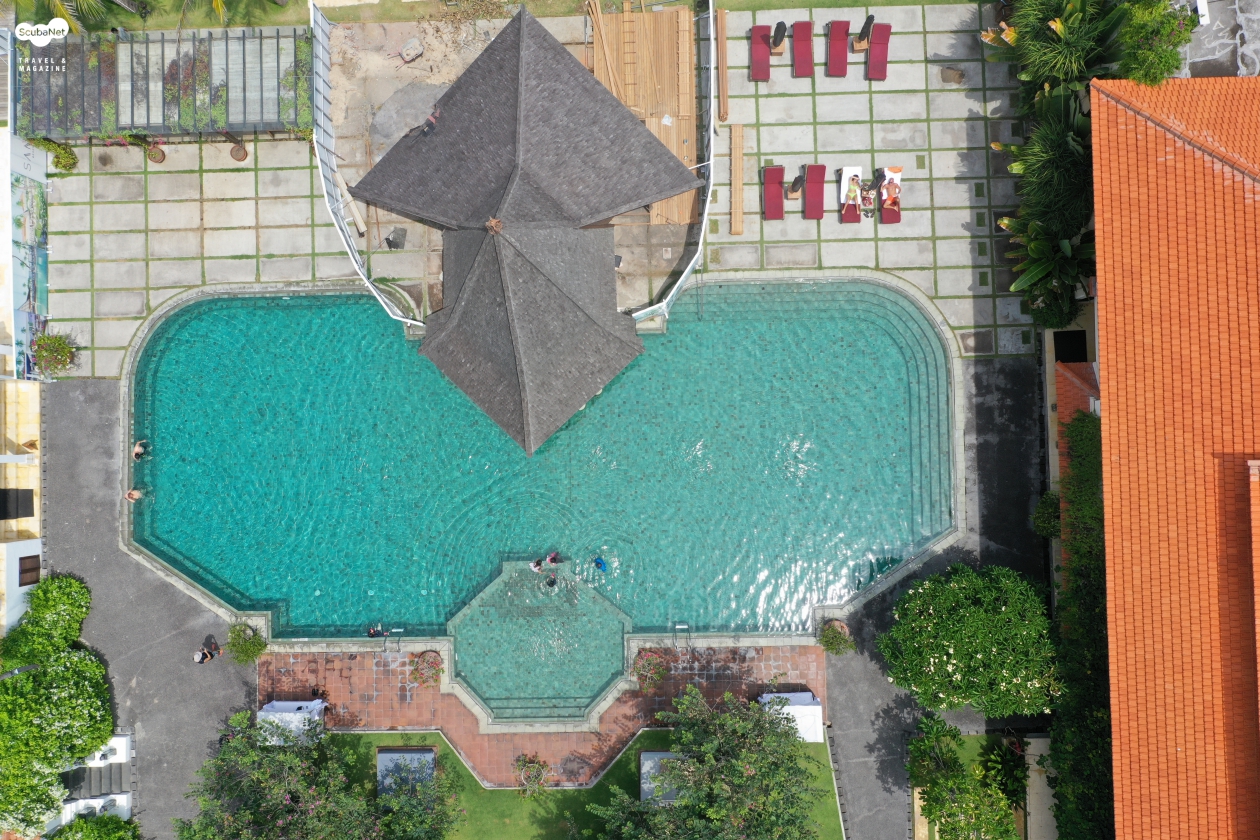 사다라 부티크 비치 리조트는 객실 80개에 해변에 면한 수영장과 정원이 있으며, 수영장 주변으로 바와 레스토랑 등이 있는 작지만 분위기 있는 리조트였다. 조식이 특히 맛났는데 과일접시와 빵, 생과일 쥬스 그리고 유러피안과 발리식 등 취향대로 선택할 수 있는 식사가 제공되었다. 다이빙을 마치고 돌아와서 수영장에서 놀면서 맥주나 음료수를 한잔 하는 것도 꽤나 유쾌한 분위기였다. 신혼부부들을 위해서는 해변 비치에서 로맨틱 디너를 주문하였는데 좋은 분위기였다고 했다.