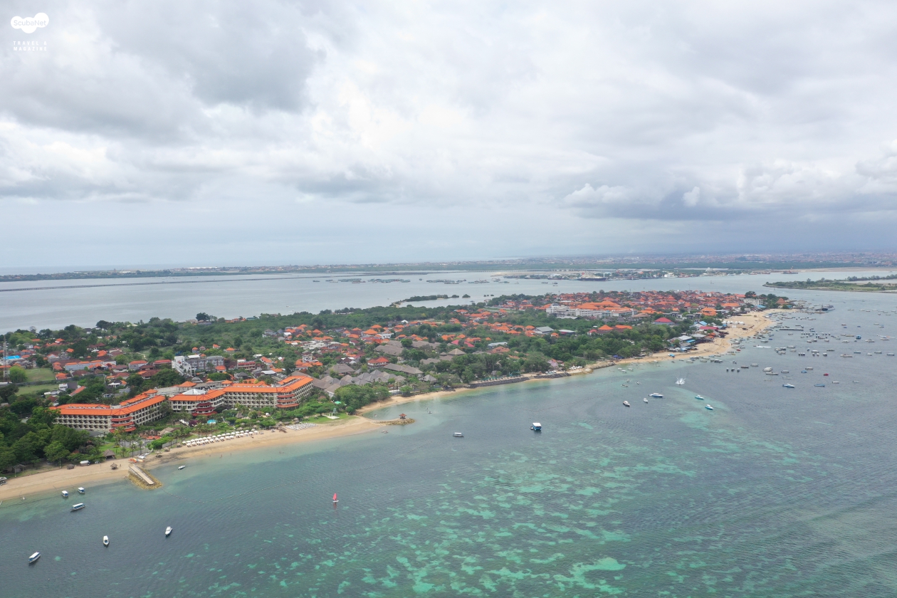 탄중베노아 해변의 드론샷 발리 다이빙 투어의 다양성발리는 길이 153 km, 폭 112 km에 면적은 5,780 km²로 우리나라 제주도 면적의 약 3배 정도로 큰 섬이다. 따라서 발리로 다이빙을 간다고 하면 부속섬인 렘봉안과 누사페니다 섬, 리버티 난파선이 있는 뚤람벤, 북쪽의 멘장안 섬, 남동쪽의 빠당바이나 깐디다사 등 다양한 곳을 선택할 수 있다. 덴파사르에서 이들 지역까지는 2시간~3시간 정도 소요되기 때문에 짧은 일정으로는 이들을 다 돌아보기가 힘들고, 몇 군데만 찾아본다고 해도 이동시간이 길기에 아예 한번의 여행에서 한 곳만 찾아가서 머물다 오기도 한다. 따라서 발리 투어를 갈 때는 어느 곳에서 다이빙을 할 것인지를 먼저 결정하고, 그에 따라 숙소를 정하는 것이 좋다.