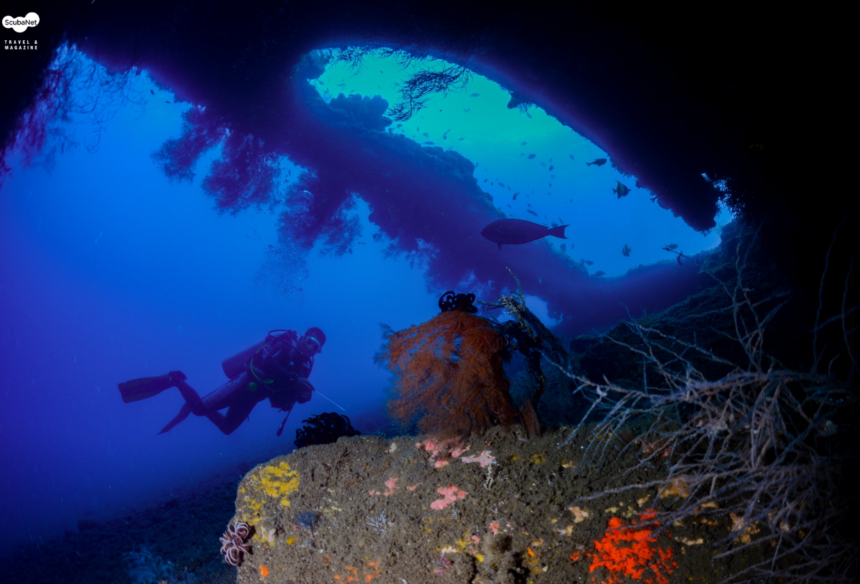 인공 리프로 자연에 동화되어 있는 난파선의 구조물