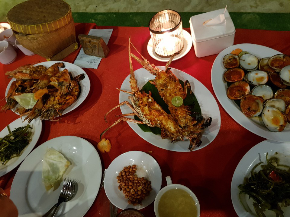 씨푸드 레스토랑발리에서 한번은 씨푸드를 먹자고 했다. 전날 따로 가서 짐바란 수산시장에서 해산물을 먹고 온 팀도 있었기에 이날은 탄중 베노아의 수리아 카페로 갔다. 짐바란은 발리를 찾는 관광객들이 한번은 가보는 곳이긴 하지만 호객행위와 바가지가 극성을 부리는 곳이라 12명이나 되는 대식구를 데리고 가기는 걱정이 되기도 했다. 다녀온 대부분의 사람들이 해변의 분위기는 좋지만 해산물 자체는 가격대비 형편없었다는 말이 많았다. 하지만 관광지라서 어쩔 수 없는 듯했다. 수리야 카페는 현지인들의 평이 좋은 곳이며 그루퍼 구이, 새우, 오징어, 조개, 야채볶음, 머드크랩 등을 시켰다. 맛은 괜찮았는데 배부르게 시키지 못해서 좀 아쉬웠다. 그래도 12명이 해산물과 함께 맥주까지 적당히 먹었는데 모두 220불이 나왔다. 1인당 $18 정도였으니 가격면에서는 선방했지만 양과 질에서 모두 조금 아쉬웠다. 결국 이날도 2차로 밤부발리를 찾아갔다. 밤부발리도 가격이 싼 곳은 아니어서 꼬치에 아락과 맥주를 마시다 보면 술값 때문에1인당 $15은 족히 나왔다.