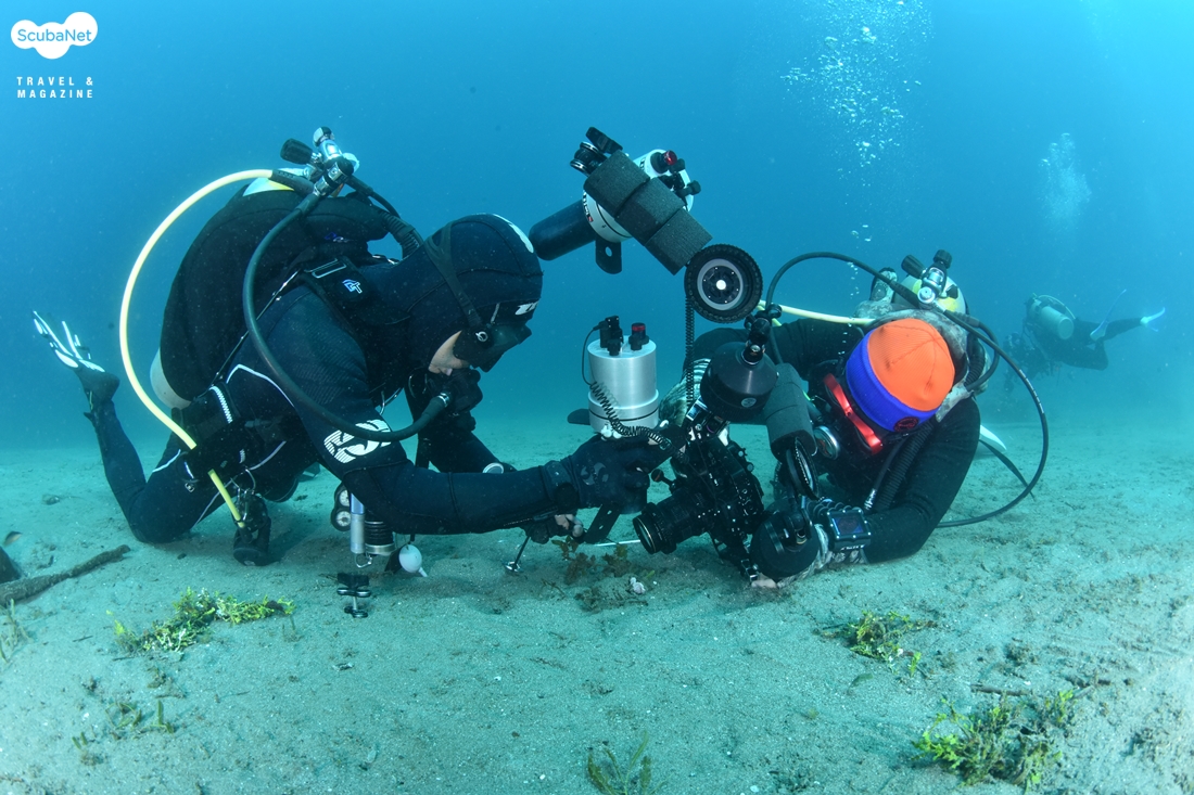 ↘ 가이드와 협력하여 사진촬영중인 다이버