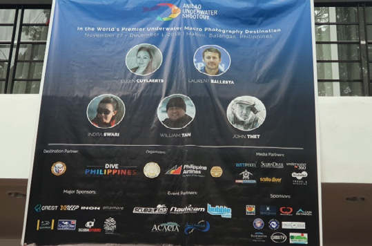 Anilao Underwater Shootout 2018 “수중 촬영대회의 월드컵”이라고 불리는 세계 최대규모의 수중촬영대회가 필리핀 아닐라오에서 개최되었다. 대회는 올해가 6회째인데 2017년에 총 173명의 참가자가 있었으며 올해는 전세계 곳곳에서 200명 이상의 수중 촬영가들이 참석하였다.