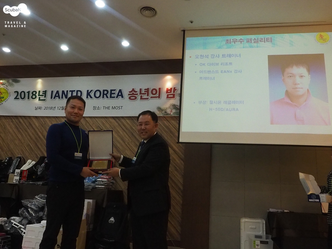 정영환 트레이너IANTD의 다이버들은 2018년 안전했던 한 해의 마무리를 다 함께 즐기며 늦은 시간까지 송년의 밤을 함께했다. 수상한분들 모두 축하 드리며, 신규트레이너님, 강사님의 활발한 활동을기원합니다.