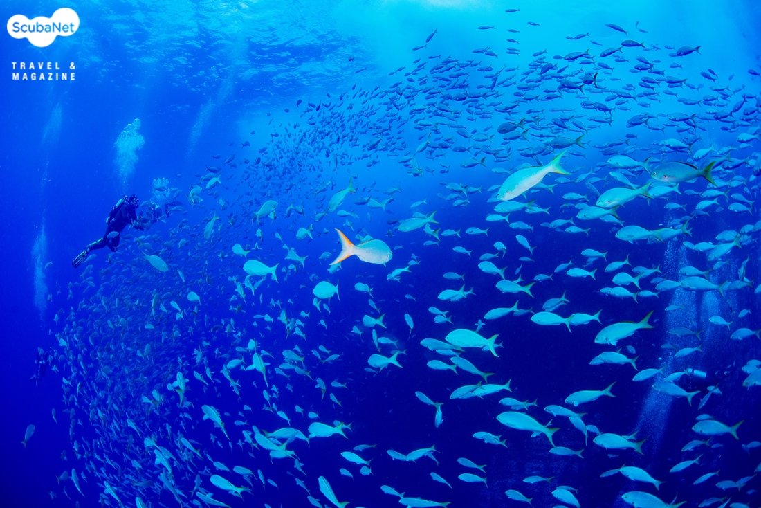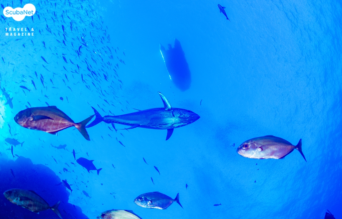 코튼마우스 트레발리 무리와 화이트팁 리프상어이 곳에서도 자이언트 패시픽 만타 레이들은 흔했고, 다이버들 주변을 계속 돌아주었기에 다이빙이 심심하지 않았다. 바위가 작기에 한바퀴 돌고 난 다음에는 햄머헤드 상어들을 보기 위해 블루워터로 나갔는데 햄머헤드 상어들이 가끔 모습을 드러냈고, 돌고래 가족들도 만날 수 있었다. 큰 참치들이 무리 지어 돌아다니기도 했고, 엄청난 규모의 가다랑어 떼가 지나가는 장관도 만날 수 있었다.