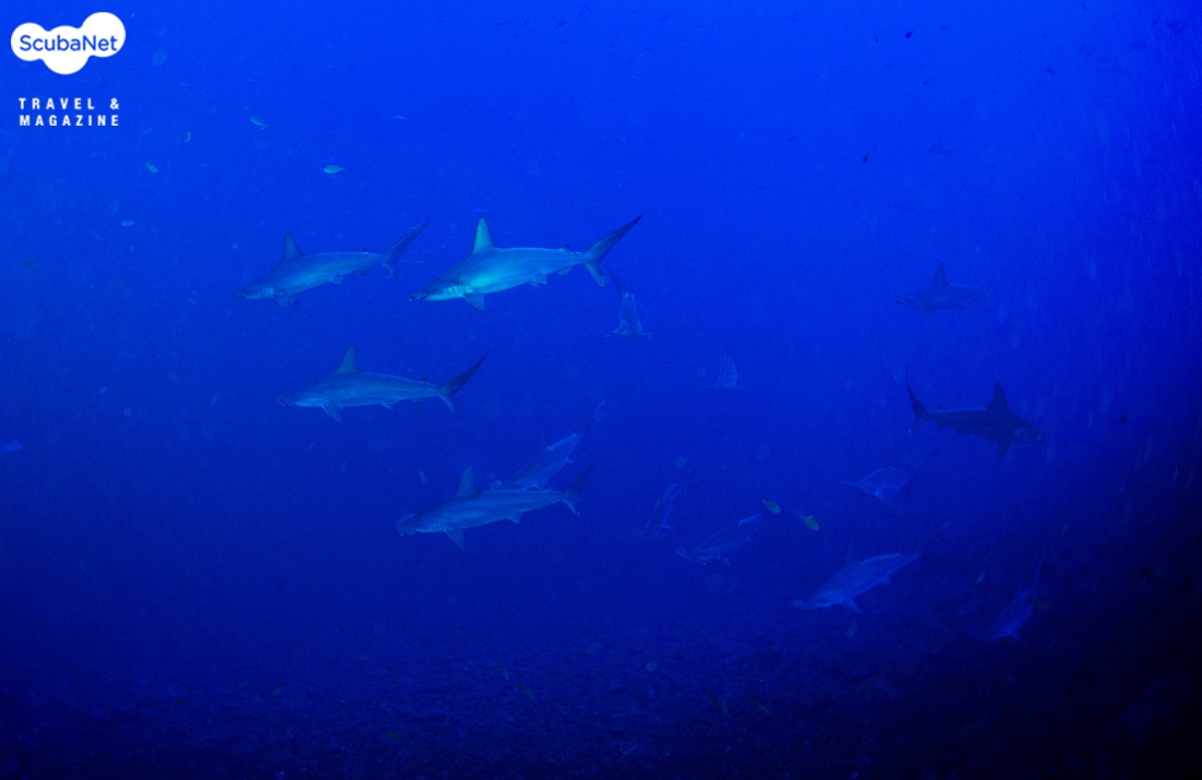 무리 지어 나타난 홍살귀상어 돌고래는 나타나지 않았지만 만타 레이는 어김없이 나타났고, 갈라파고스 상어와 실버팁 상어, 화이트팁 상어 등이 꾸준히 나타나 주었다. 고래상어나 타이거 상어가 나타나길 바랬지만 이번 투어에서는 만날 운이 없는 듯했다.