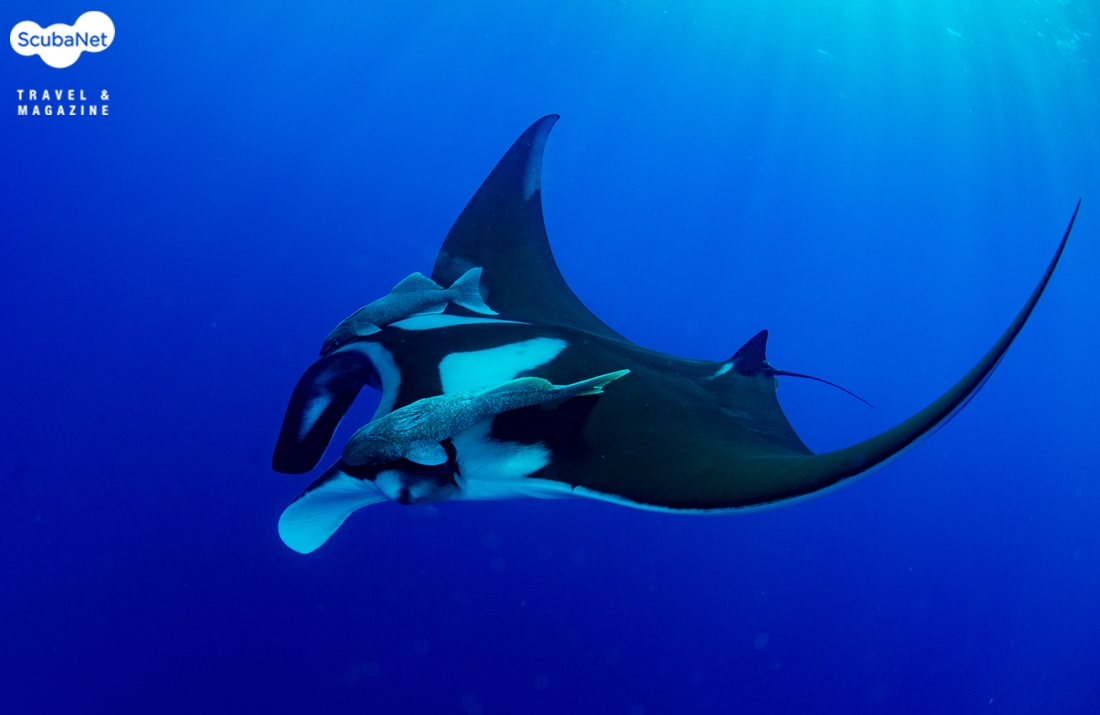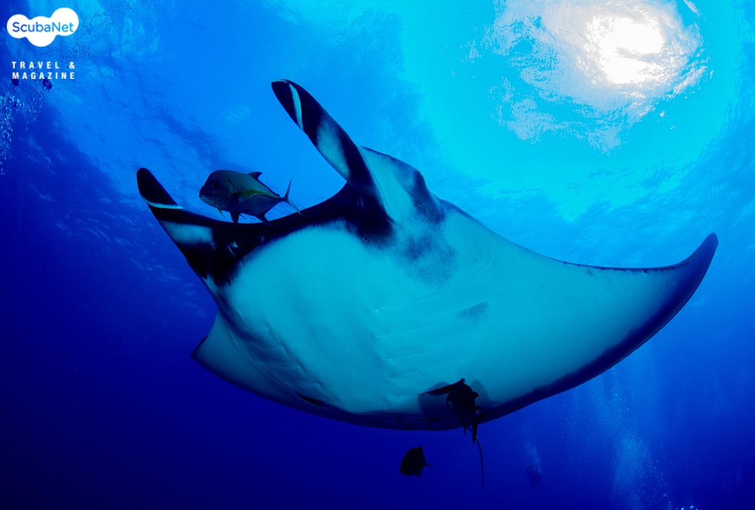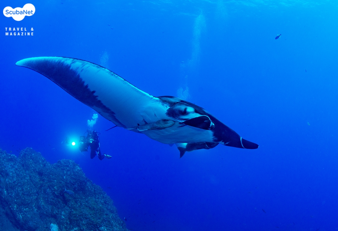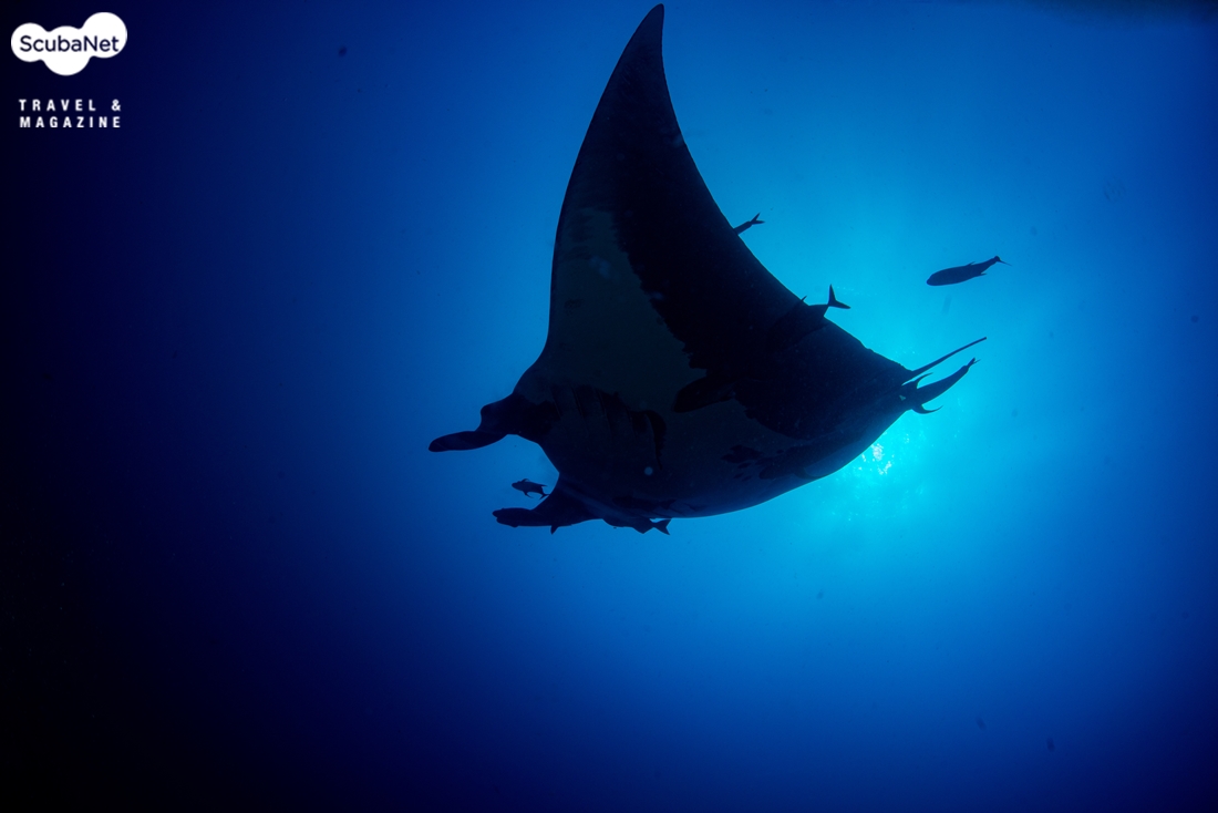 머리 위로 지나가는 만타레이. 배에 상처가 보였다.첫날의 다이빙은 대단히 만족스러웠다. 매 다이빙마다 나타났던 만타레이도 좋았고, 가까운 거리까지 다가와 주었던 돌고래는 정말로 환상적이었다. 게다가 다양한 상어들까지 나타나니 이래서 소코로를 찾는구나 하는 생각이 들었다.