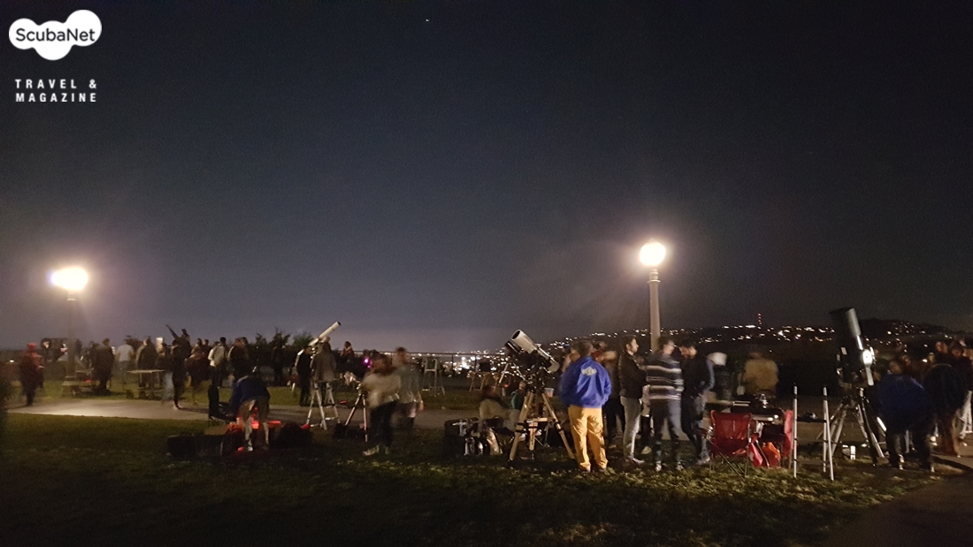 그리피스 천문대 앞의 아마추어 천문가들