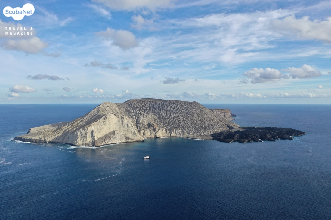 산베네딕토 섬 엘 캐년MV발렌티나가 처음 도착한 곳은 산베네딕토 섬의 엘 캐년 El Canon이었다. 특이한 형태의 분화구가 있는 곳이라 드론을 날려서 항공 촬영을 하는 재미가 있었다. 응회암이 침식되어 골과 능선을 이루고 있는 분화구와 분화구의 옆구리를 뚫고 나온 용암이 선상지를 이룬 화산지형은 그 자체가 자연의 아름다움을 보여주는 멋진 절경이었다. 산베네딕토 섬에는 엘보일러 El Boiler라는 포인트가 하나 더 있었지만 첫 날은 엘 캐년에서만 하루 종일 다이빙을 하였다.