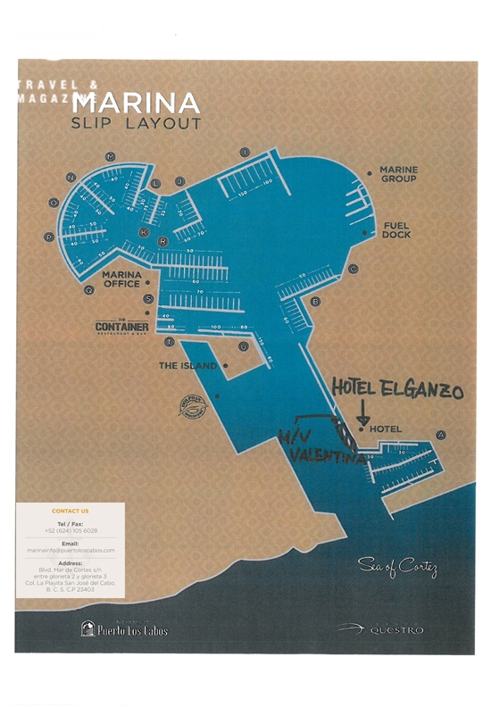 산호세델카보 공항과 로스카보스 항구로스카보스 국제공항 또는 산호세델카보 공항은 항공코드로 SJD로 검색된다. 공항에서 로스카보스 항구까지는 30분 정도 소요된다. 인근에 카보산루카스 Cabo San Lucas라는 휴양도시가 있는데 실제로는 바하 캘리포니아의 최남단이다. 종종 로스카보스 항구와 카보산루카스 항구를 혼동하는 경우가 있는데 MV 발렌티나의 소코로 트립은 로스카보스 항구에서 출항한다. 로스카보스 항구 자체는 그렇게 크지 않다.