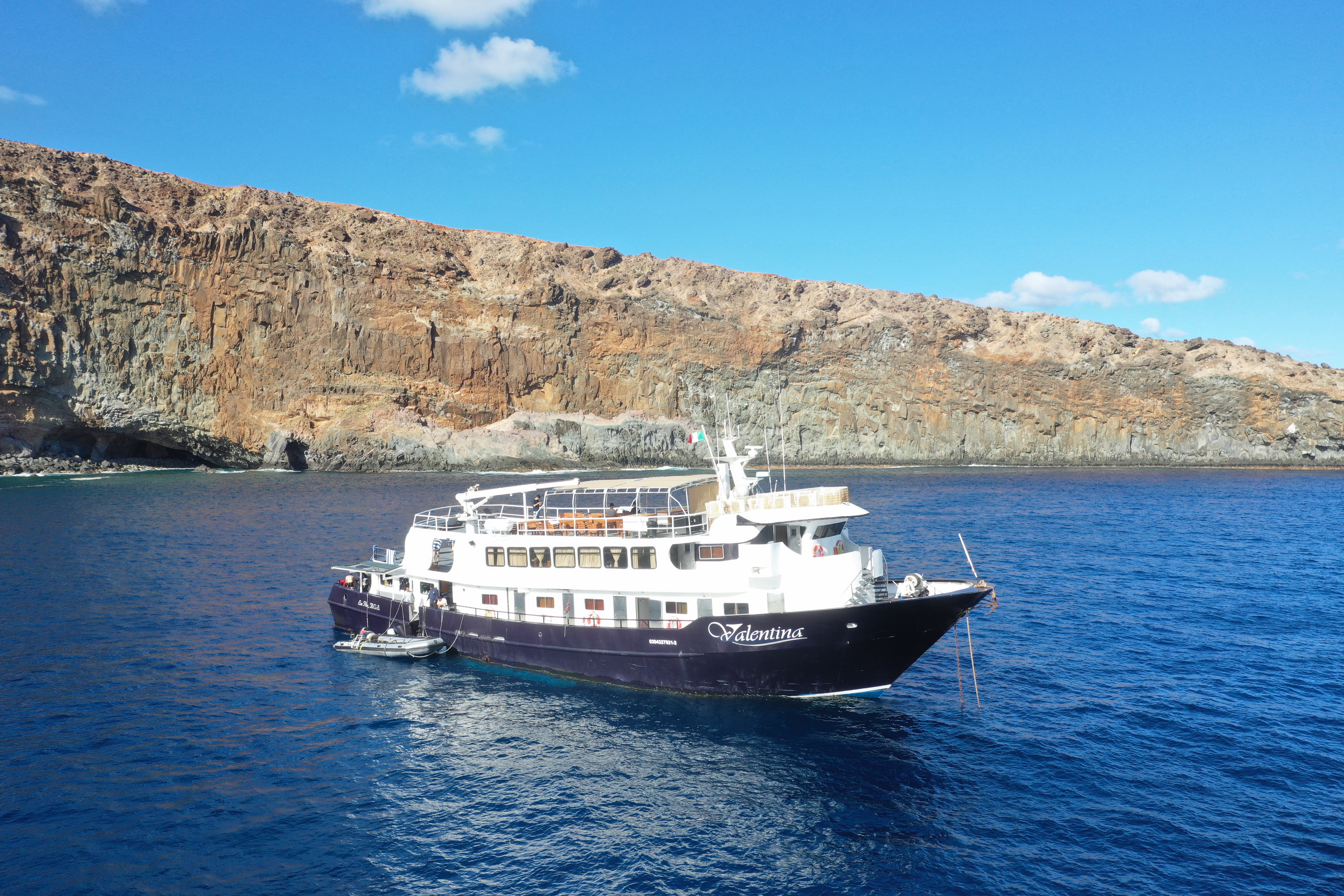 산 베네딕토 섬의 엘 캐년 포인트에 정박 중인 MV 발렌티나