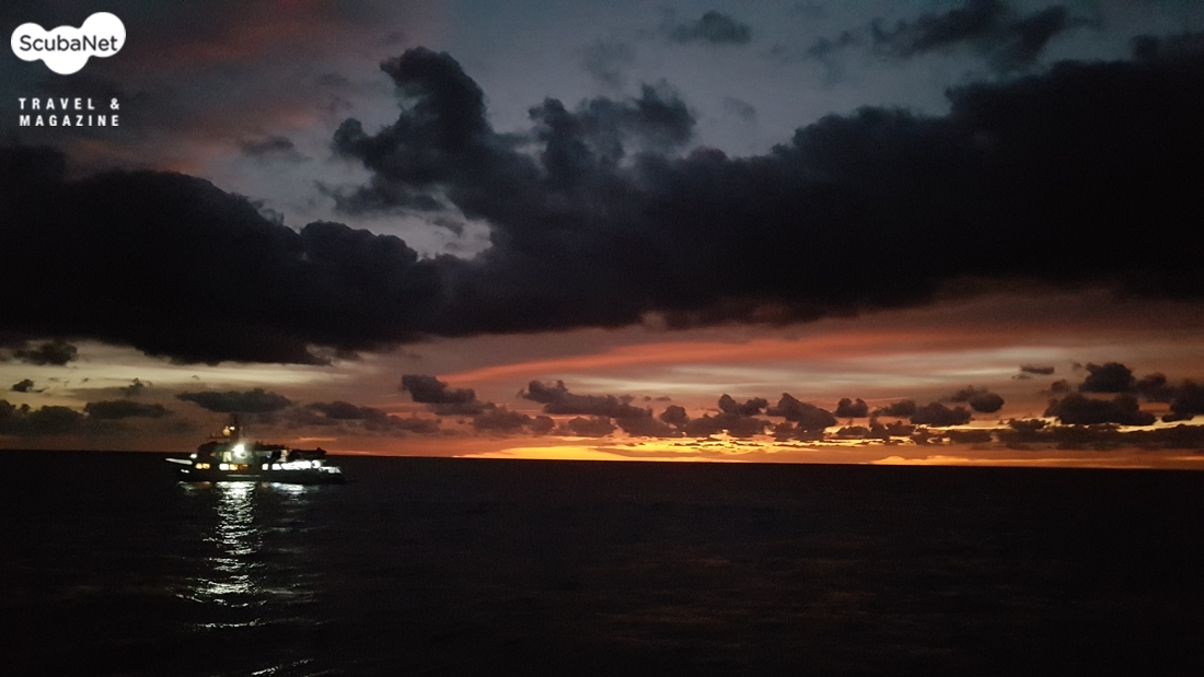 네번째 다이빙을 마치고 상승하니 해가 지고 있었다.