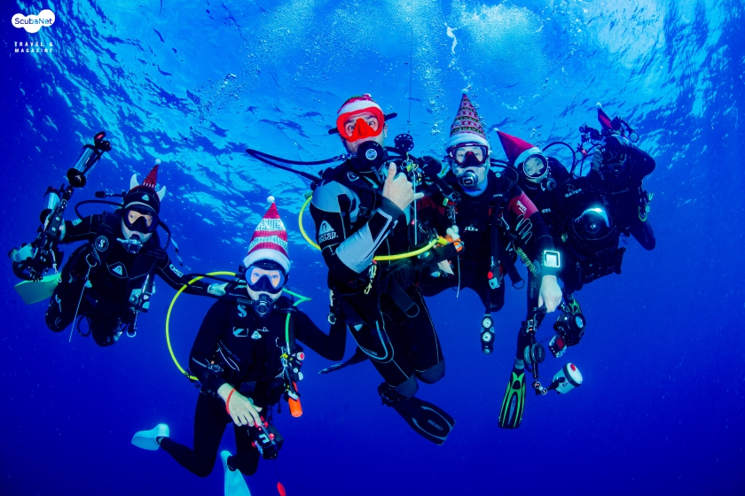 크리스마스 이브를 기념해 산타 모자를 쓰고 다이빙한 다이버들