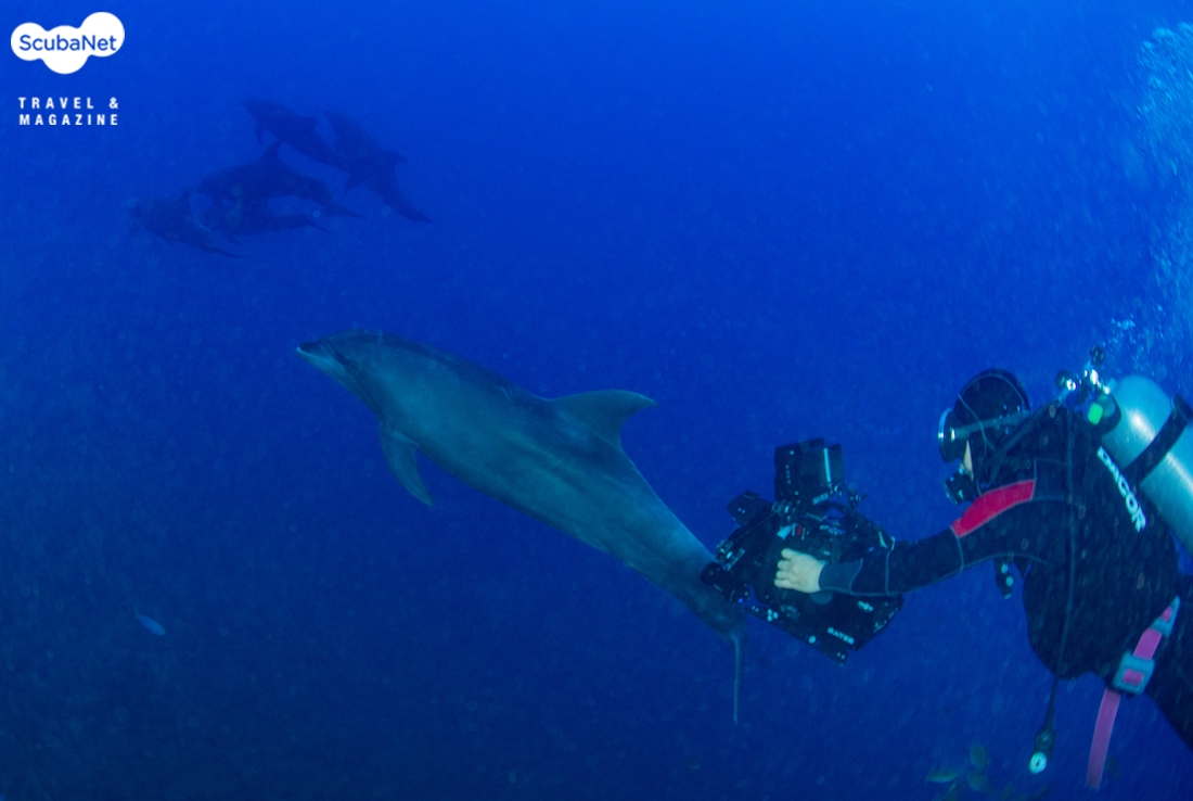 첫 다이빙은 체크 다이빙으로 진행되었는데 입수하자 마자 돌고래들이 나타나 우리를 환영해주었다. 주변에서 유영하다가 다이버들 가까이까지 와서 촬영할 기회를 주었다. 다음으로만타레이가 나타나 맴돌아주었는데 다들 첫 다이빙에서부터 화이트만타와 블랙만타를 보았으니 역시 소코로라며 환호를 했다.