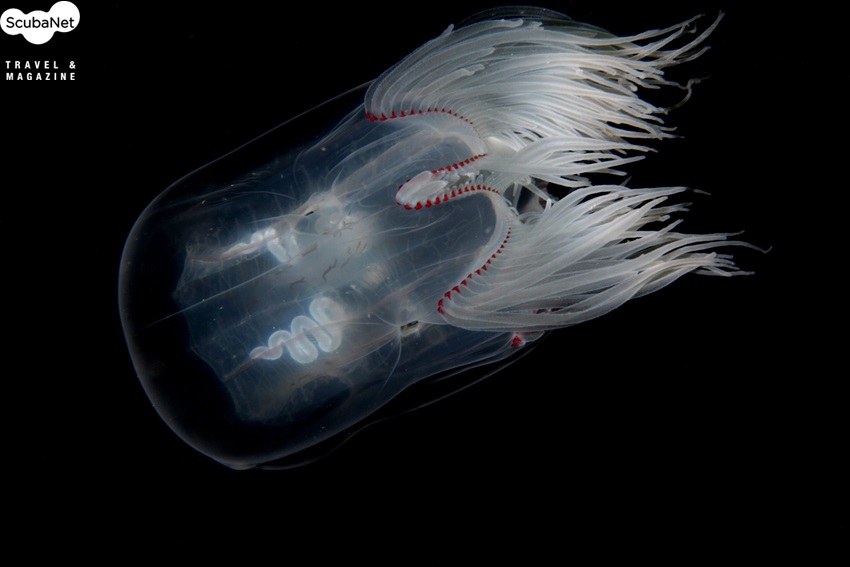 무희나선 해파리2011년 5월 17일, 포항시 영암리, 수심 5m, 수온 17℃,시야 3m 캐논 350D, 60mm, f18, 1/200, ISO 100,선팩 스피드라이트