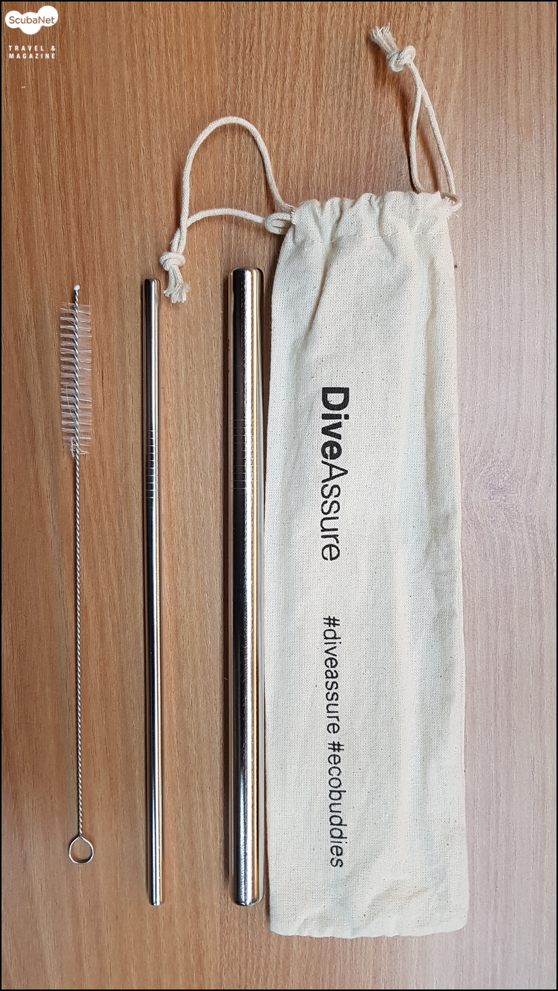 플라스틱 빨대를 사용하지 말자!더운 날 시원한 음료수를 마실 때 우리는 그 동안 플라스틱 빨대를 사용해왔다. 그 플라스틱 빨대가 바다거북의 콧구멍에 들어가 있는 것을 꺼내 주는 유튜브 영상은 정말이지 참혹했다. 최근 분해가능한 종이 빨대로 바꾸는 곳들이 늘어났지만 아예 빨대를 사용하지 말자는 움직임도 있다. 그게 힘들다면 재사용 가능한 스텐레스 빨대를 사용하는 것도 방법이다. 다이브어슈어에서는 세척용 솔까지 포함해서 홍보용으로 나누어 주기도 한다.