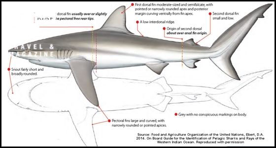 갈라파고스 상어와 실크 상어, 더스크 상어의 구분이들 상어들이 함께 나타나는 곳에서 실제 상어들을 보고 이들을 구분하는 것은 일반 다이버들에게는 쉽지 않을 것 같다. 서식하는 수심으로 비교하면 실키 상어가 표층, 갈라파고스 상어가 중층 그리고 더스키 상어가 저층에 서식한다고 볼 수 있다. 하지만 다이버들이 다이빙하는 20m~30m 수심에서는 이들 상어들이 모두 나타날 수 있다.