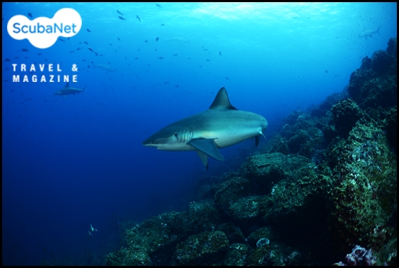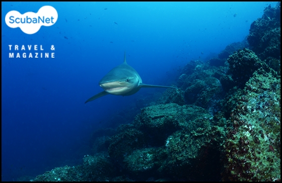 클리닝스테이션을 선회하는 갈라파고스 상어. 소코로 섬