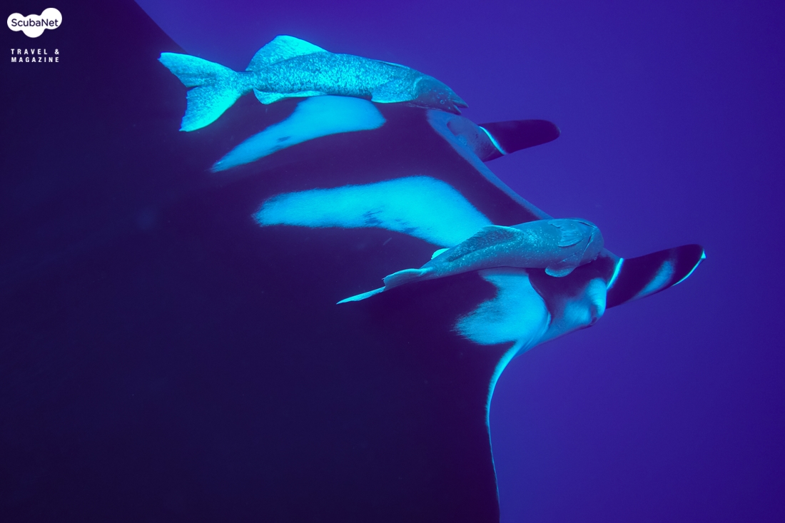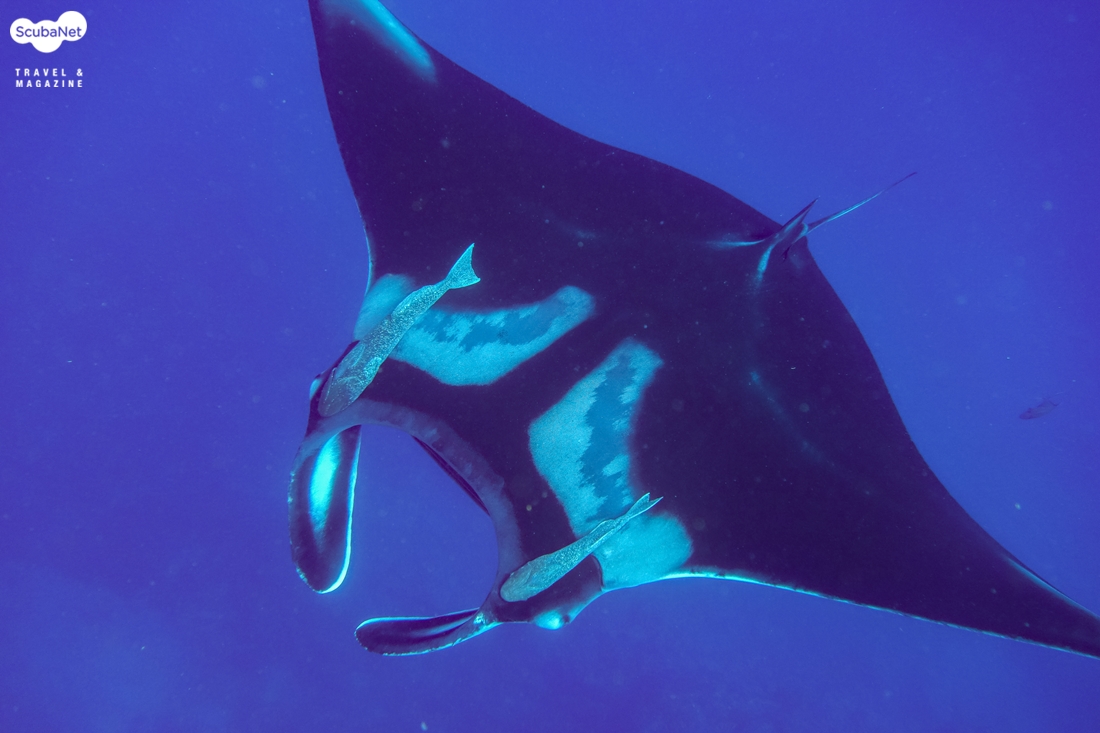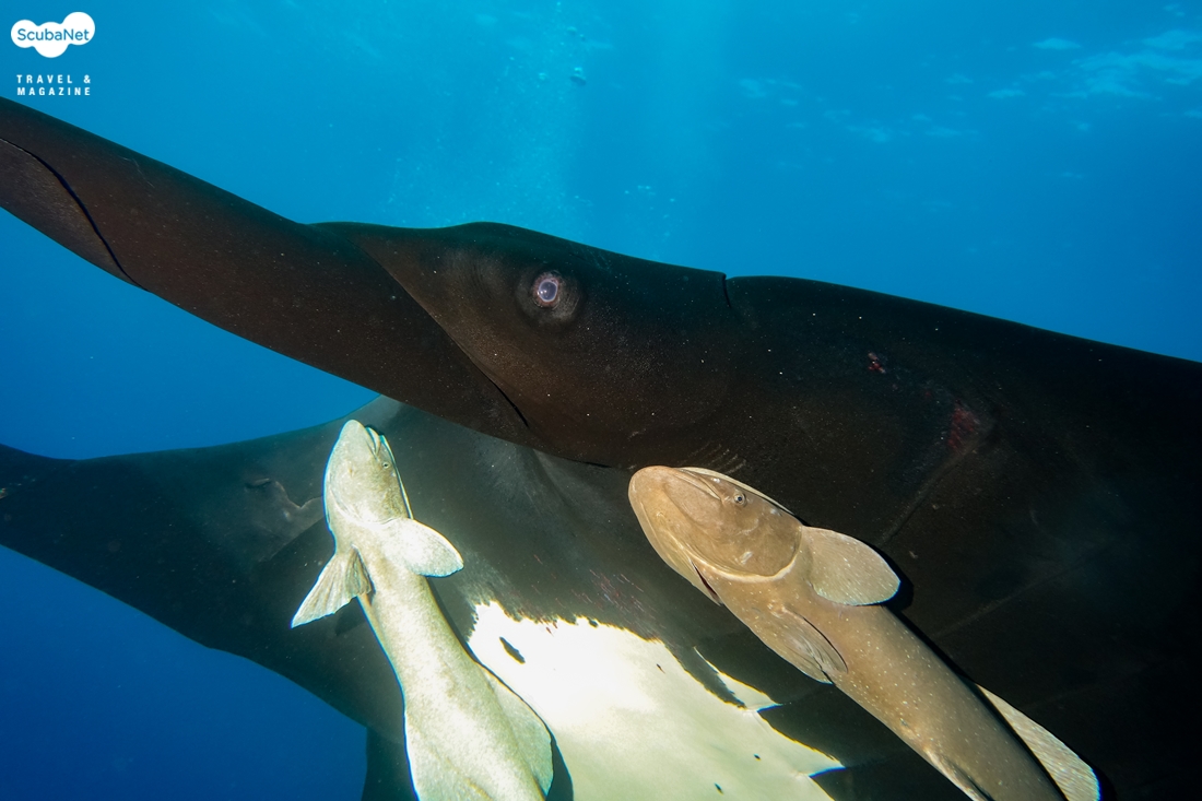 자이언트 패시픽 만타와 레모라들. F3.5, 1/400s