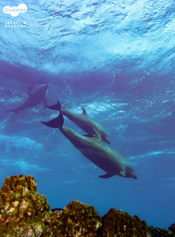 수면 근처로 유영하는 돌고래들. F1.8, 1/1250s