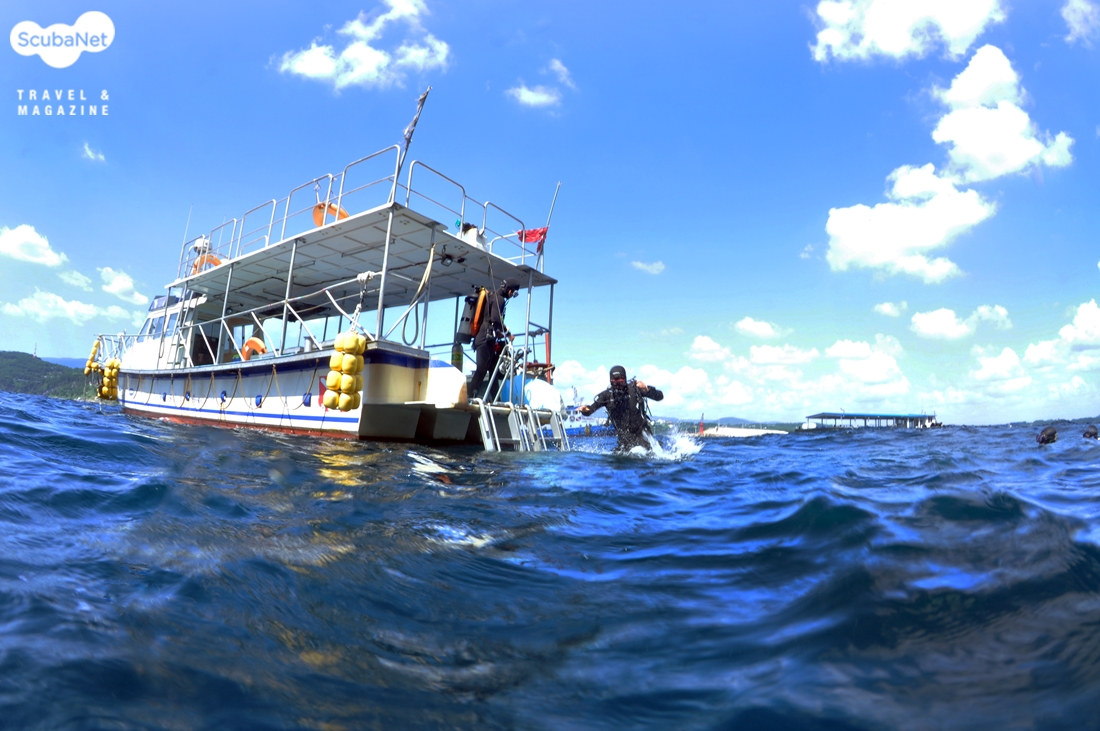 첫 보트 다이빙은 대한민국 다이빙 1번지인 문섬에서 시작되었다. 일반적으로 진행되는 문섬의 섬 다이빙은 낚시유어선을 이용하여 한개창이나 새끼섬에 도착하여 장비와 탱크 그리고 개인 소지품을 모두 갖고 상륙한 다음에 비치다이빙 방식으로 다이빙을 하게 된다. 하지만 새섬 방파제 건설 이후로 부쩍 심해진 조류와 동방파제 해녀사태 이후로 부쩍 많아진 다이버들로 인해 낚시어선들이 빈번하게 드나들면서 섬 다이빙에서 염려스러운 상황들이 자주 발생하는 것을 보게 된다. 이에 반해서 보트 다이빙은 탱크와 장비는 물론 소지품까지 따로 내릴 일도 없고, 배에서 입수하고, 배로 출수할 수 있어서 훨씬 편하고 안전한 점이 있다. 게다가 섬 다이빙에서는 갈 수 없거나 가기 어려운 포인트들에서 다이빙을 할 수 있다는 큰 장점이 있다.