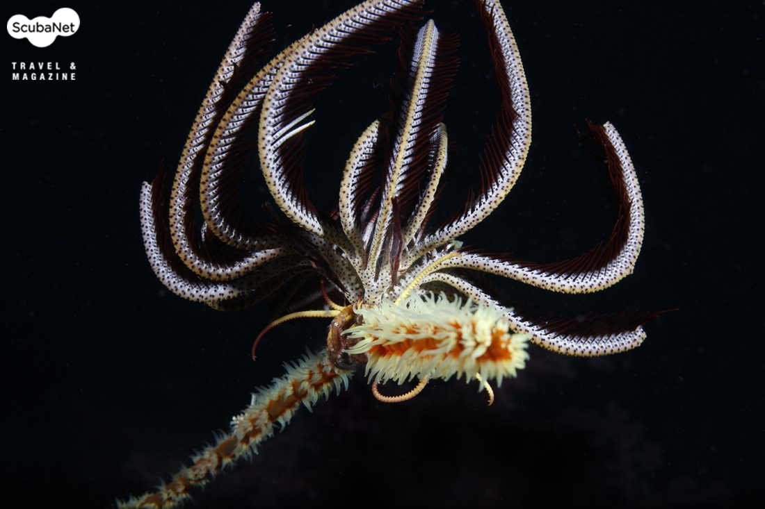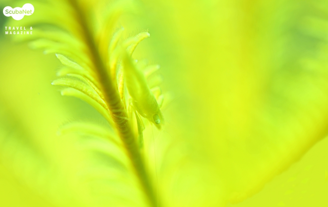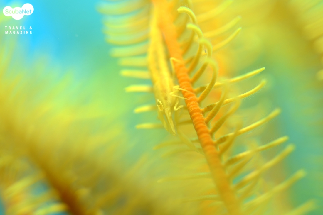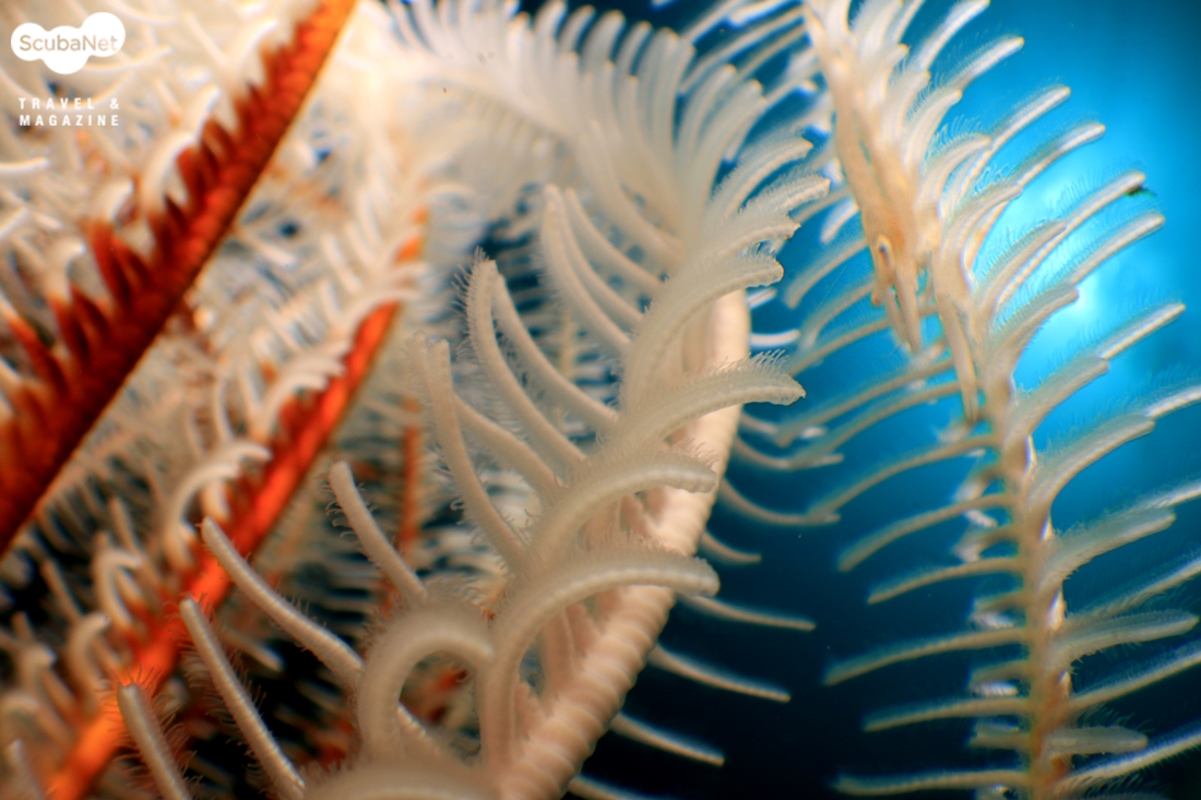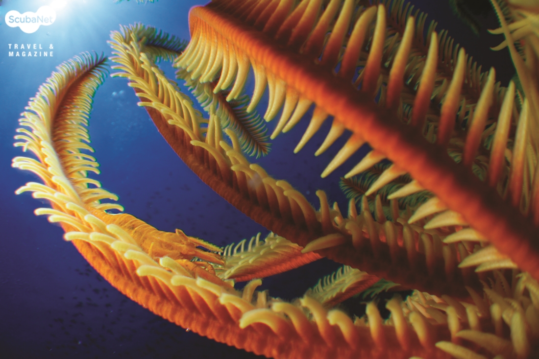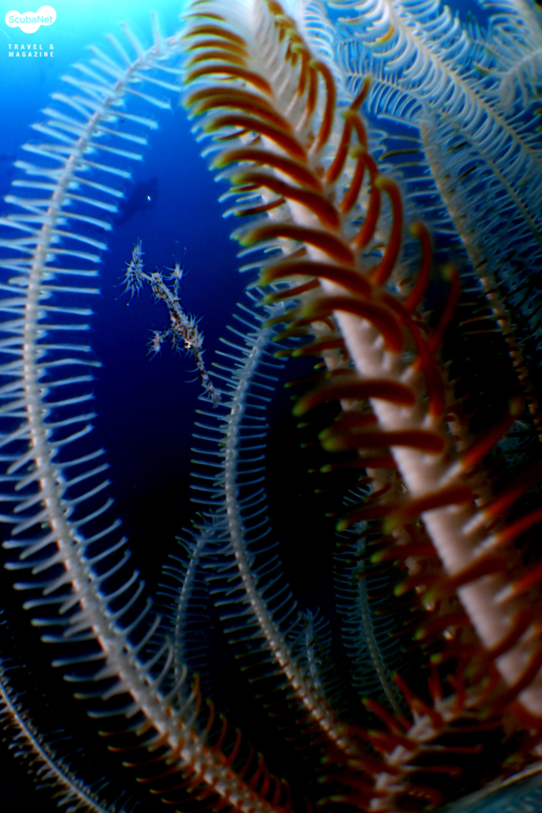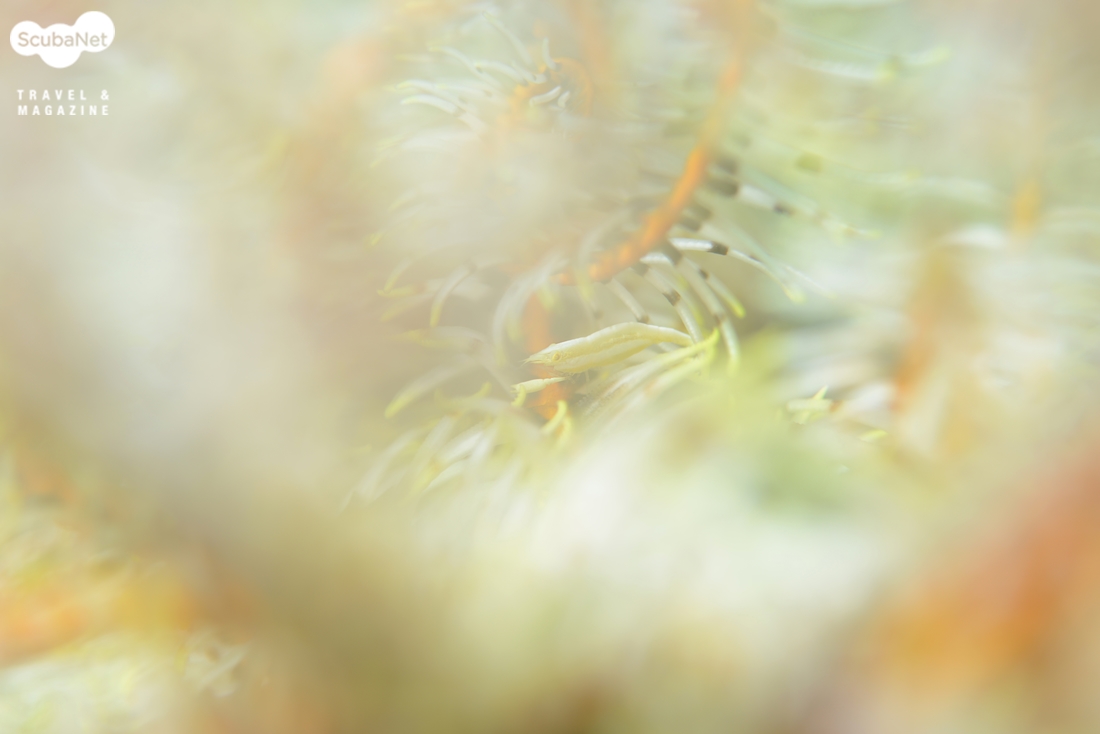 ↗↘바다나리와 공생 새우의 마크로 와이드 촬영. 바다나리 팔의 라인 유지가 중요한 키 포인트이다