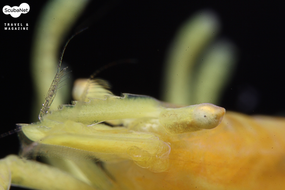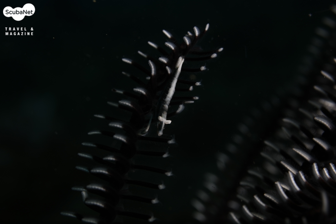 검은 색 바다나리와 공생 새우의 흰색 줄을 돋보이게 촬영하면 좋을 것 같다.