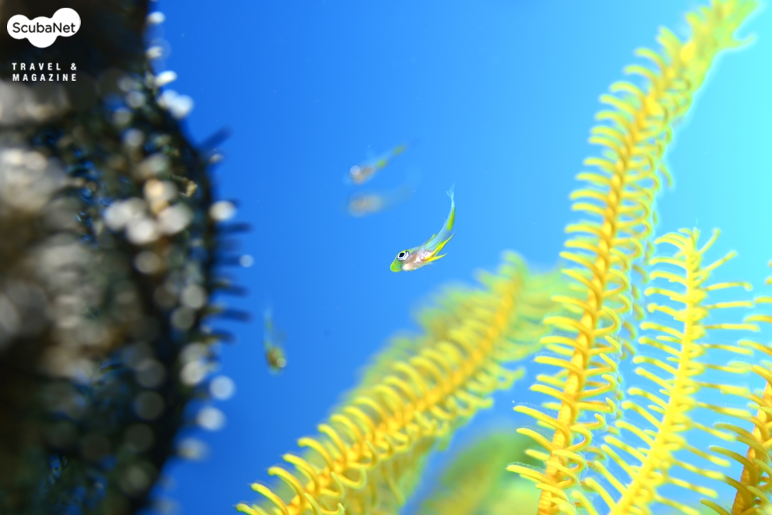 바다나리 주위에 존재하는 생물들을 같이 촬영하여도 바다나리는 좋은 부소재가 될 수 있다.