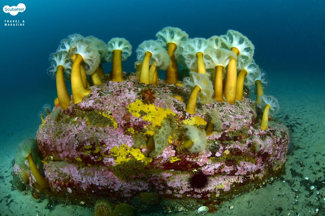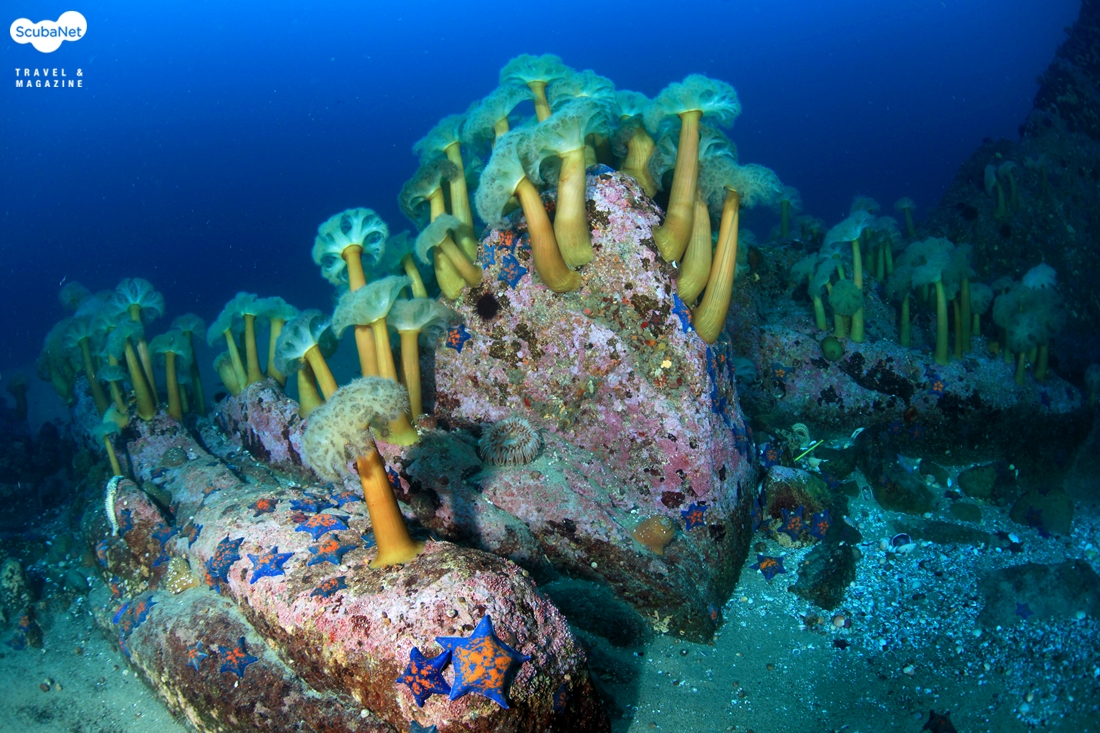 암반에 부착생물들은 주로 말미잘류가 주종을 이루고 있는데 흰색과 쑥색 그리고 묽은색의 말미잘들이 오묘하게 섞여서 자라고 있는탓에 특히 사진가들에게는 화려한 색감을 담아낼수 있는 소재로 반가운 생물이기도 하다. 수심 36미터급의 자연암반 지역은 속초권의 웅장한 바위지역을 연상케하는 거대한 협곡의 암반지역을 만나볼수 있으며 이곳역시 여러색상의 말미잘들이 빈틈없이 포진해있어 교묘한 암반의형태와 함께 사진가들이 자주찾는 포토존이 되어주기도 한다