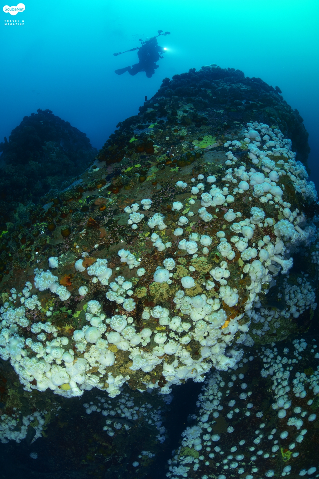 오늘의 다이빙에서는 여름의 끝자락 수온을 느낄수 있었지만 수심 35미터에서는 벌써 5 도 정도의 수온차를 보이면서 새하얀 섬유세닐 말미잘들이 꼿꼿하게 피어난 모습을 볼수가 있었다