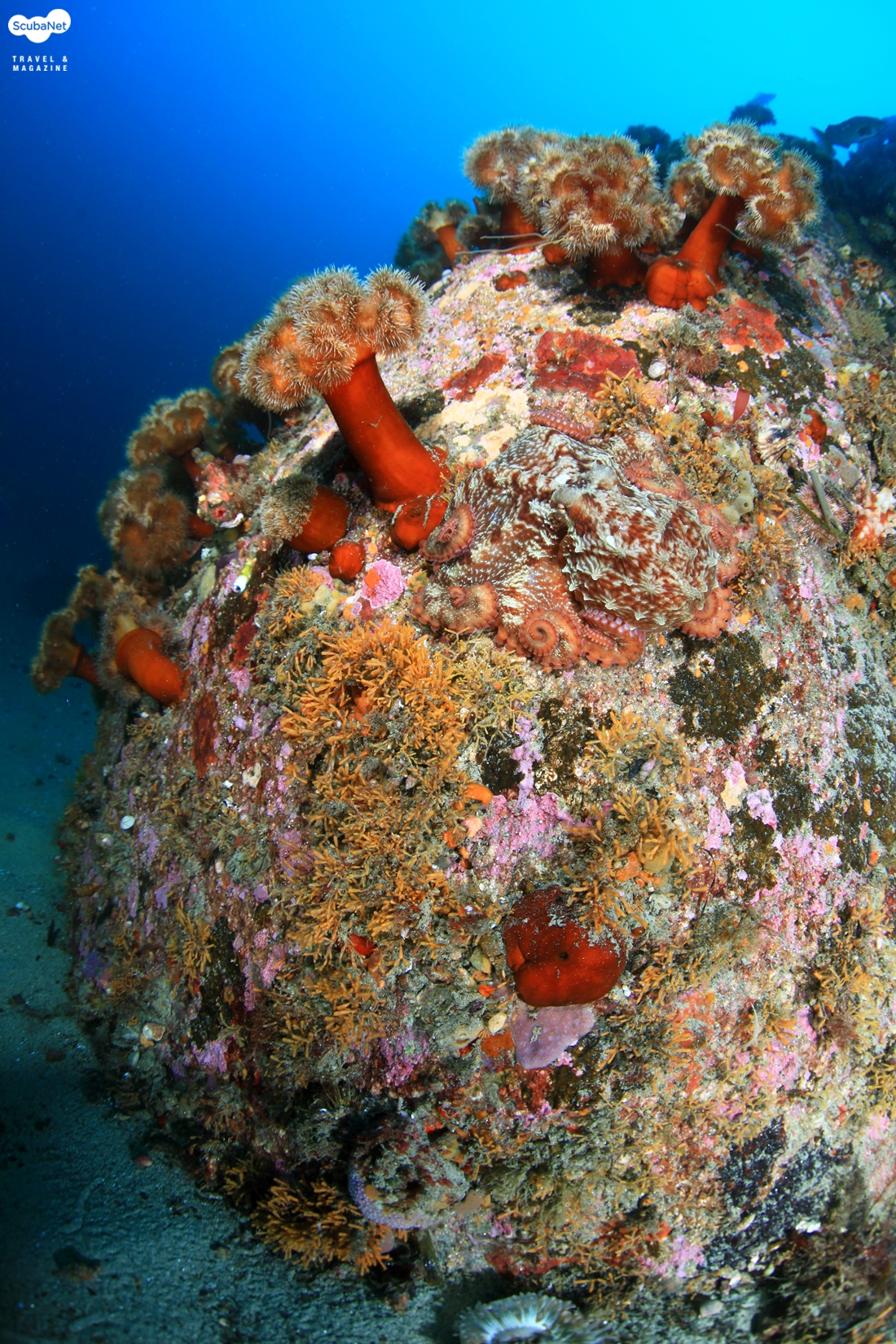 한겨울이나 또는 수온이 10도 내외를 보일 때 쯤이면 동해의 명물인 대왕문어들이 많이 찾는곳인지라 어렵지 않게 대왕문어를 조우할수 있으며 수온의 변화가 있기전까지는 대략적으로 이다음 다이빙에서도 같은 문어를 비슷한 장소에서 또다시 만나볼수 있는곳이다