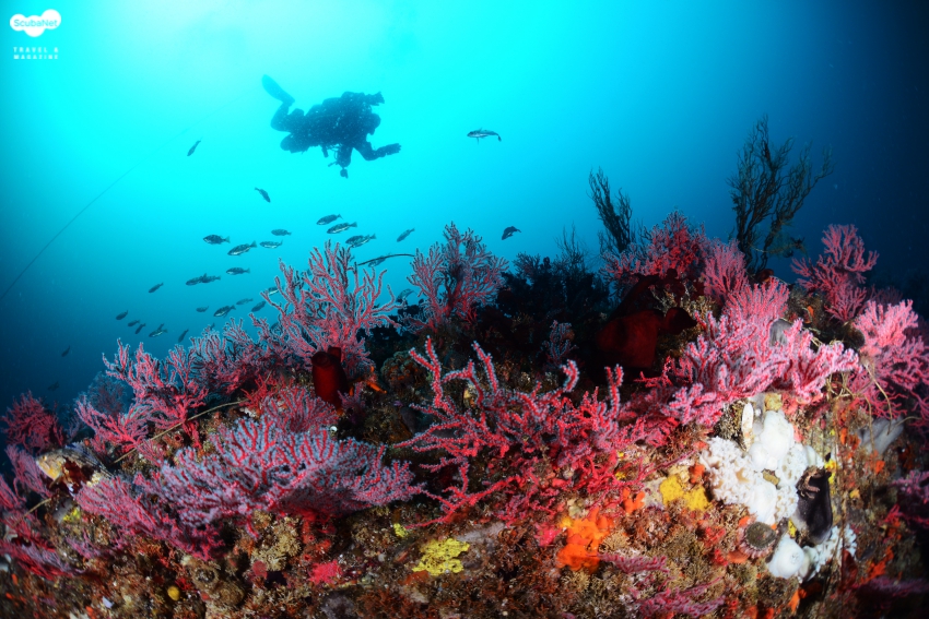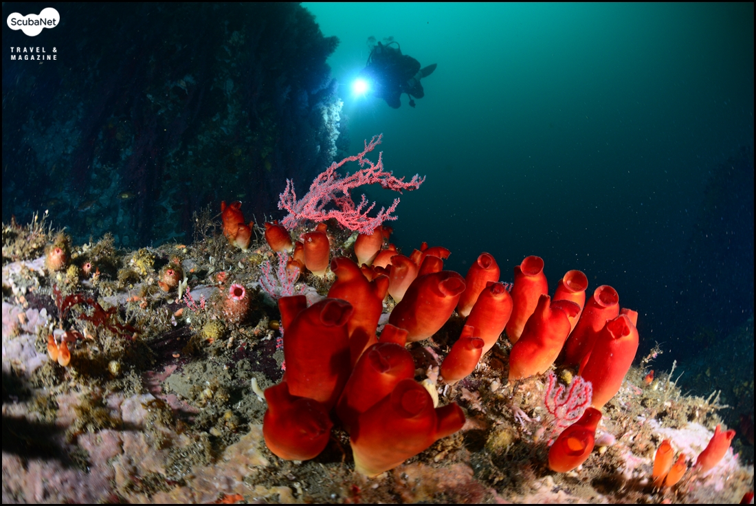 화려한 색상의 비단멍게 군락은 수중사진가들에게는 좋은 주제가 된다