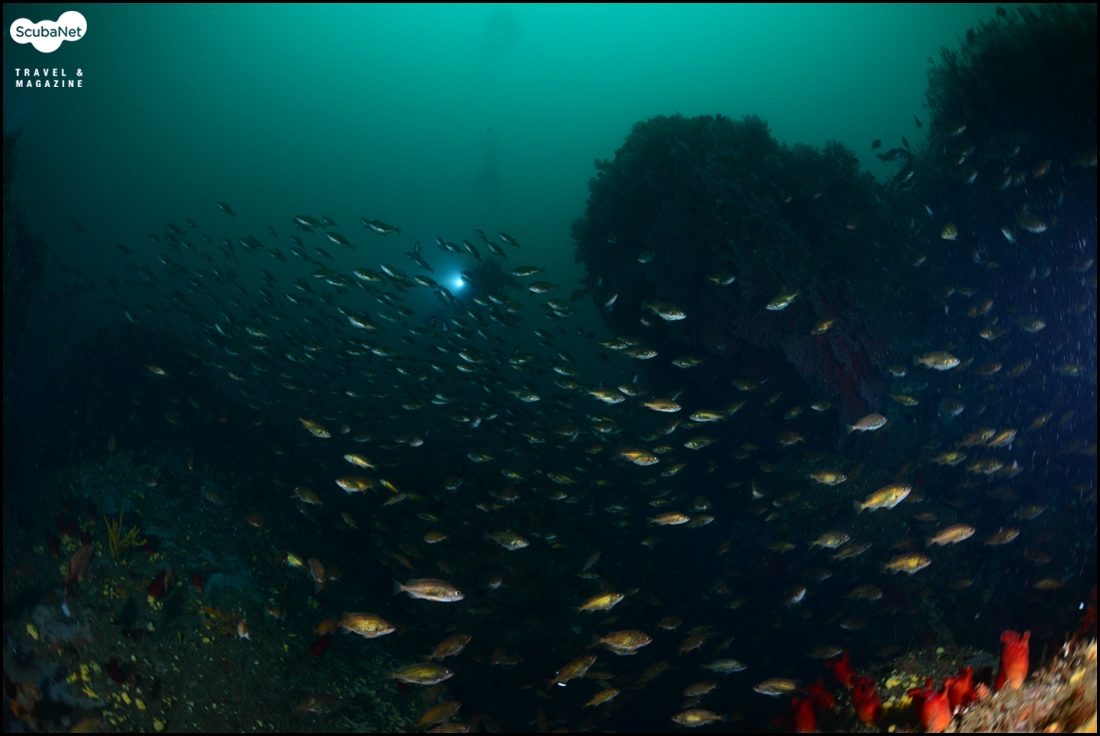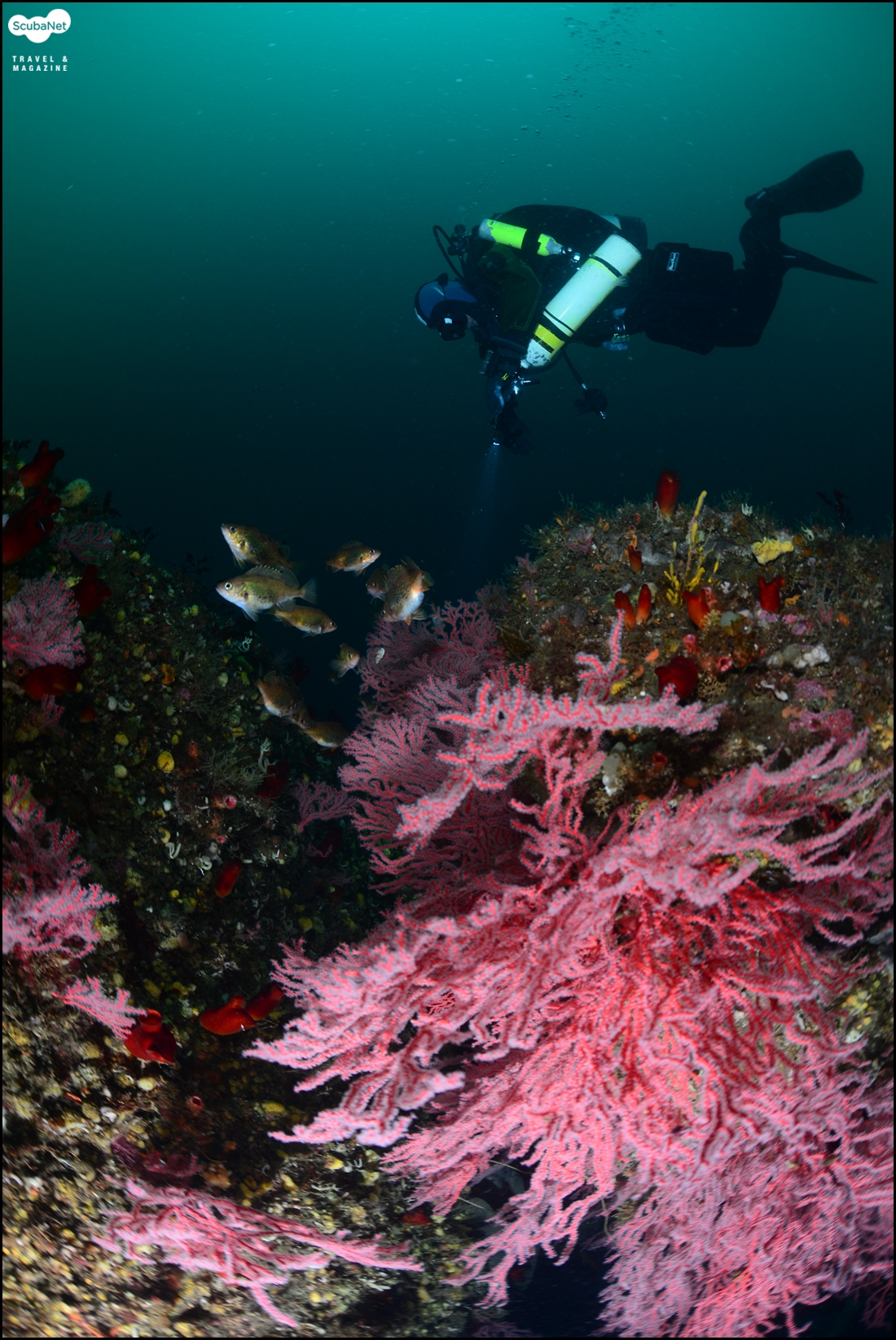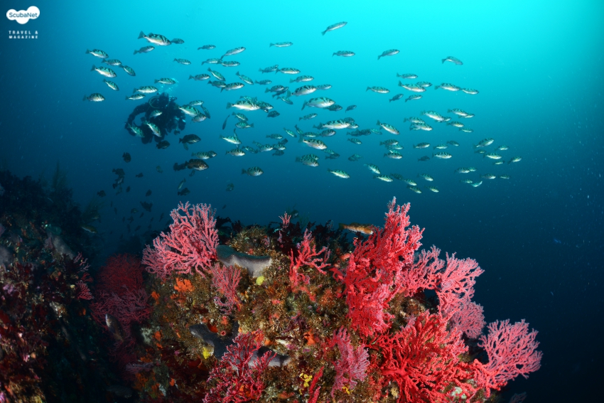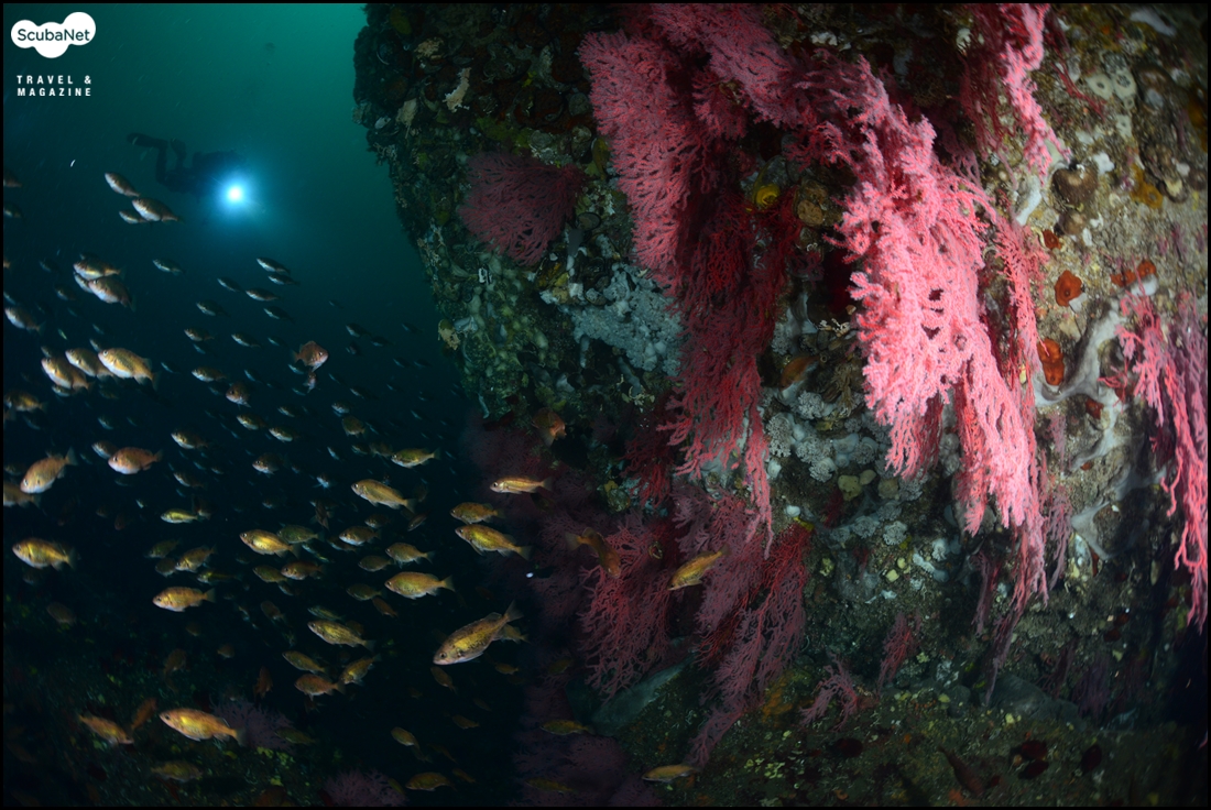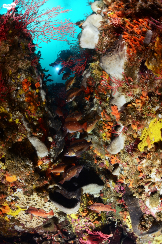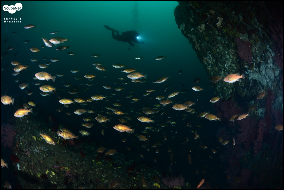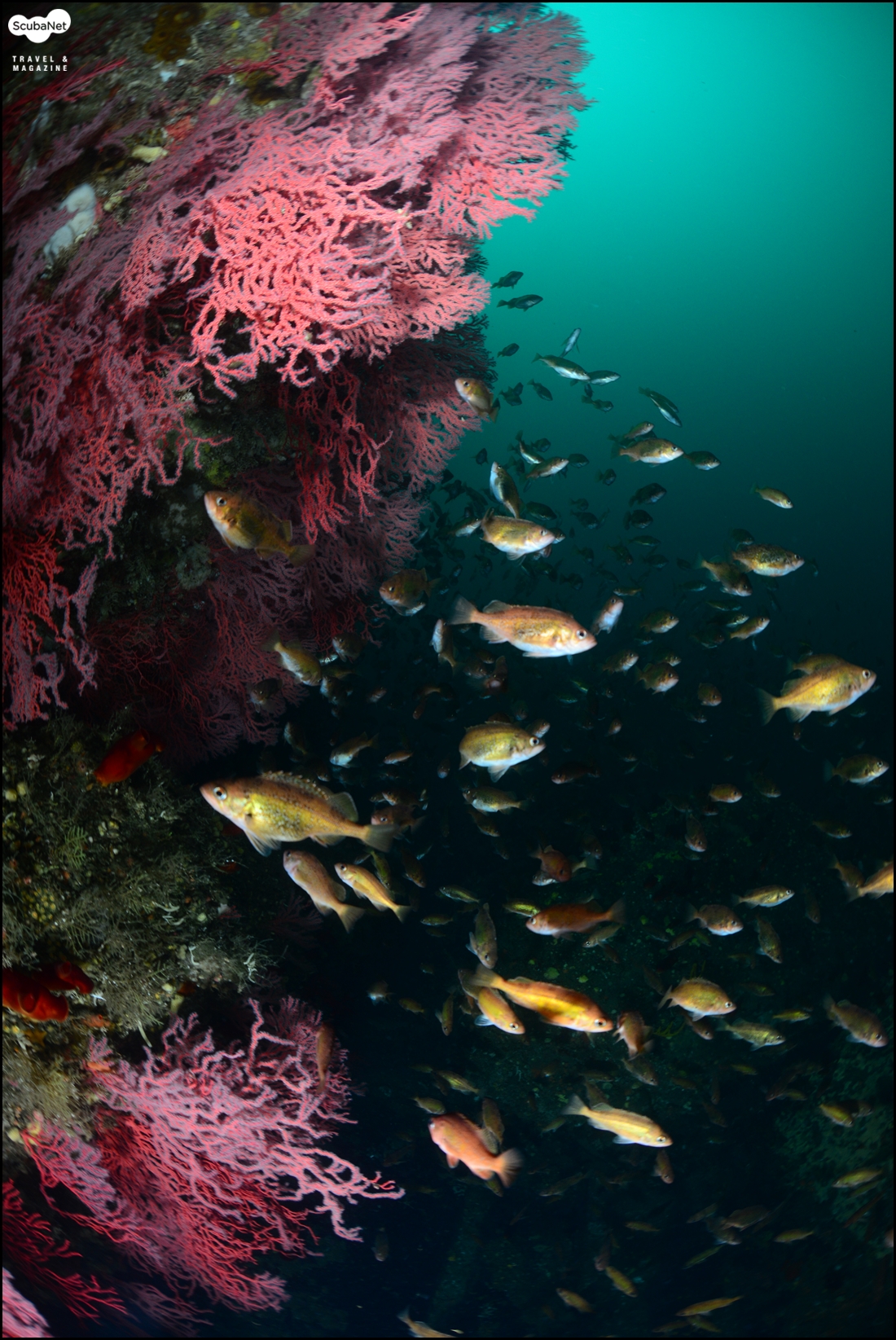 울릉도 포인트는 부채뿔산호 군락이 화려한 곳인데 볼락 무리가 풍성함을 더해주었다