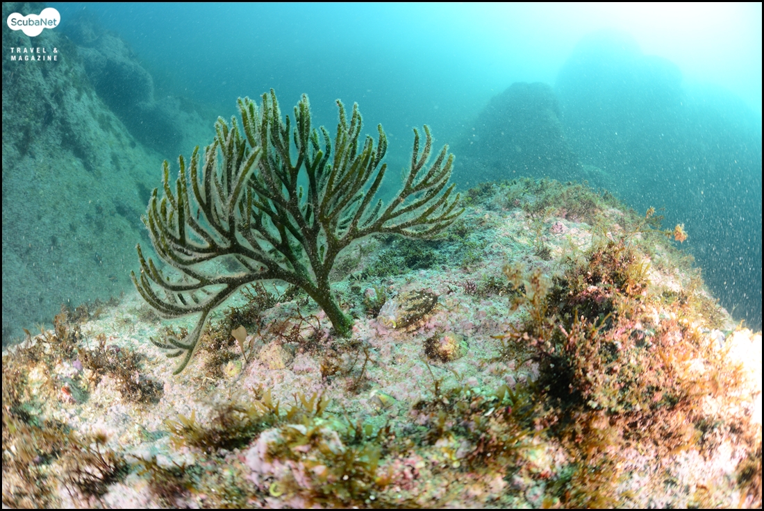 부채뿔산호와 산호붙이히드라들의 부착생물들과 불볼락 무리들이 있었다.그곳은 바위 봉우리의 규모가 그러 크진 않았지만 바위 사이에 크랙도 있었고, 그곳에 부채뿔산호 군락이 있고, 탁자볼락 무리가 숨어 있었다. 물론 봉우리 위에 불볼락들이 있기는 했지만 무리는 크지 않았다. 잔압도 그리 많지 않았기에 10분 정도 짧은 시간에 간단하게 촬영하고 다이빙을 마무리했다.