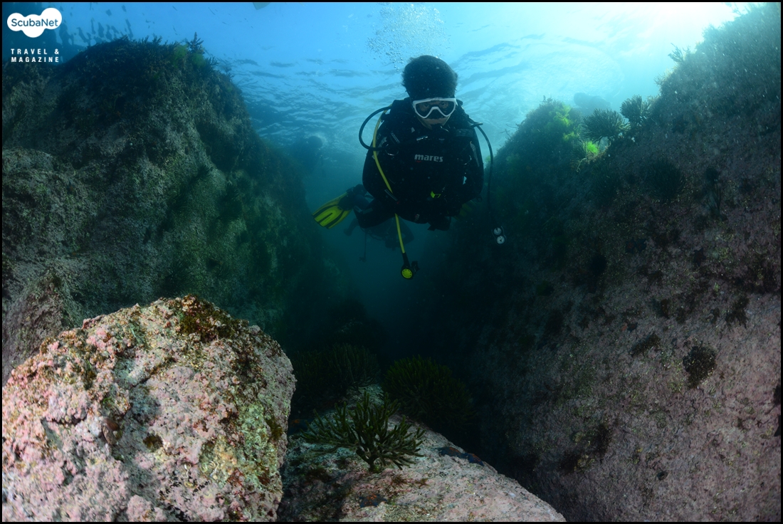 울릉도 포인트 봉우리 근처에서 상승을 준비하는 다이버