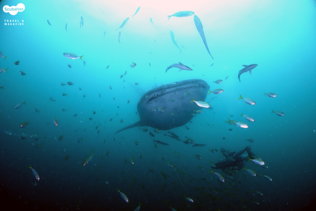 다이빙 넷째 날 고래상어 다이빙보르네오 섬에 면한 탈리사얀 Talisayan 포인트는 고래상어 2~3 마리가 상시 출몰하는 곳으로 알려져 있다. 큰 어선들이 아래에 집어등을 켜고 모여드는 물고기를 그물로 잡는 곳이라고 하는데 추정하길 그물에 걸렸다 빠져 나오는 작은 물고기들을 먹으려고 고래상어들이 모여들면서 고래상어를 볼 수 있는 곳으로 유명해지게 된 것 같다. 보르네오 섬이 가까운 곳이라 시야가 그렇게 좋지 않았지만 주위를 두리번거리고 있을 때 갑자기 나타난 고래상어가 다이버들을 스치듯이 지나가는 경우가 많아서 깜짝 놀라기도 했다.