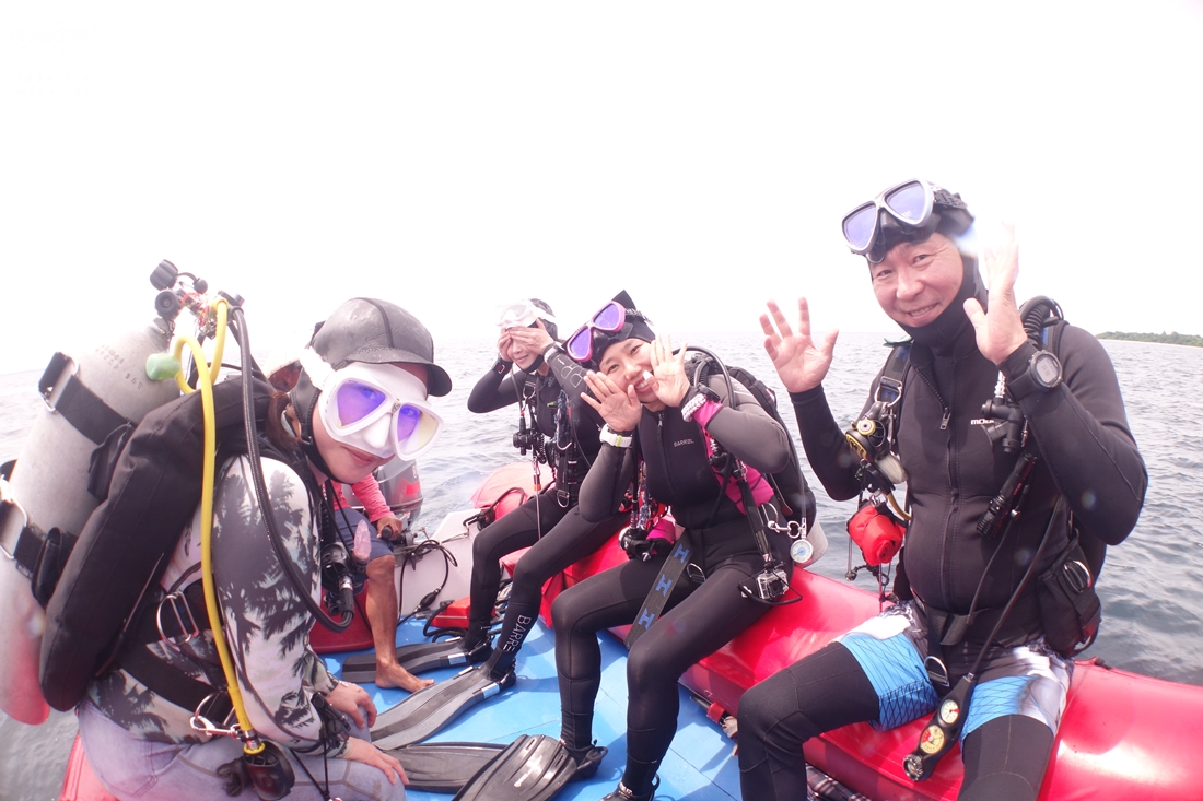 다이빙 첫 날 데라완 섬본격적으로 다이빙이 진행된 날이다. 약간의 시간 차이는 있지만 대체적으로 하루 4회 다이빙을 진행하면서 1회 7시 30분, 2회 11시, 3회 15시, 4회 18시 30분에 시작되었다. 그린 그룹으로 배정받은 한국인 다이버 5인은 체크다이빙을 함께 진행하였다.