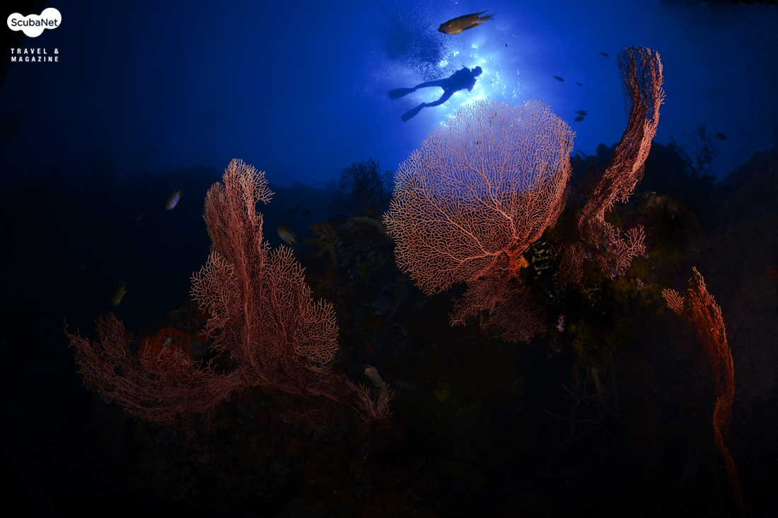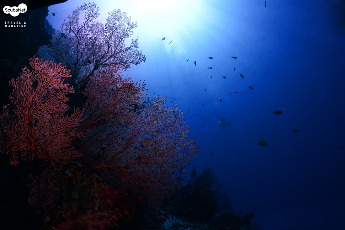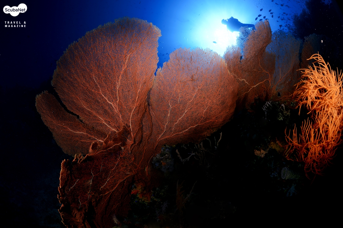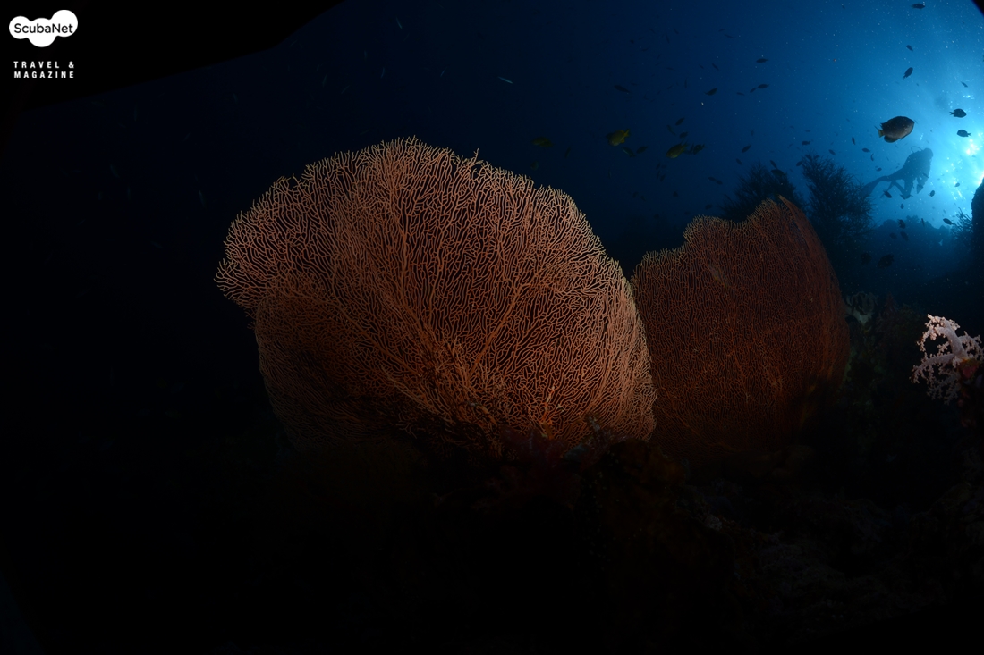 씨팬은 부채모양의 산호인데 씨팬 그 자체만을 촬영한다면 단순하여 그리 좋은 사진은 아닐 것이다. 피사체로써 씨팬을 선택할 시 주위와 비교하여 반사율이 높은 것이 좋고, 자연스러운 태양의 위치를 고려하고, 단순한 모양보다는 다이내믹한 느낌을 주는 모양, 무엇보다 중요한 것은 주위에 적당히 작은 물고기가 있는 곳을 찾는 것이 단순한 사진이 되는 것을 피하는 길이다.