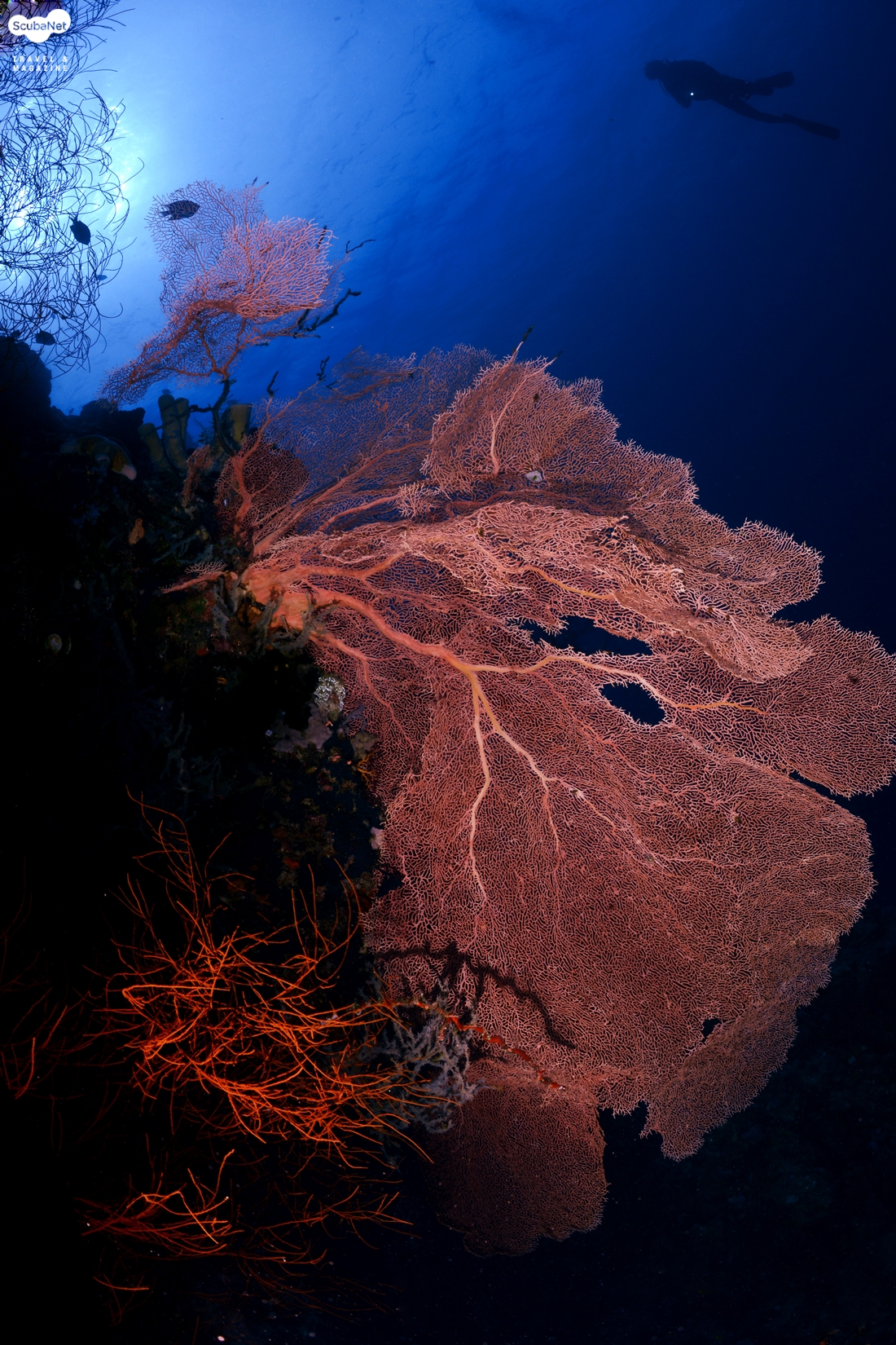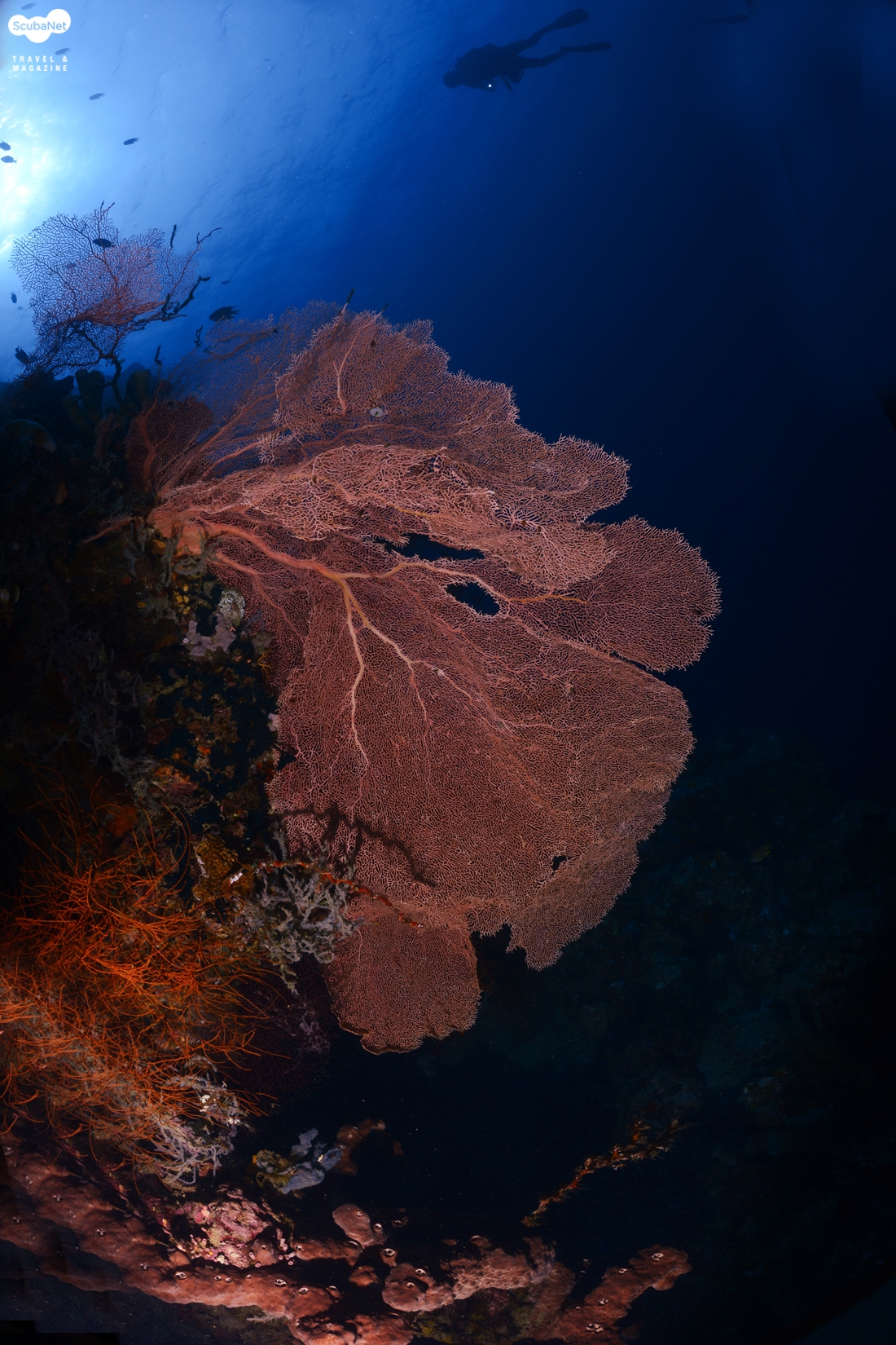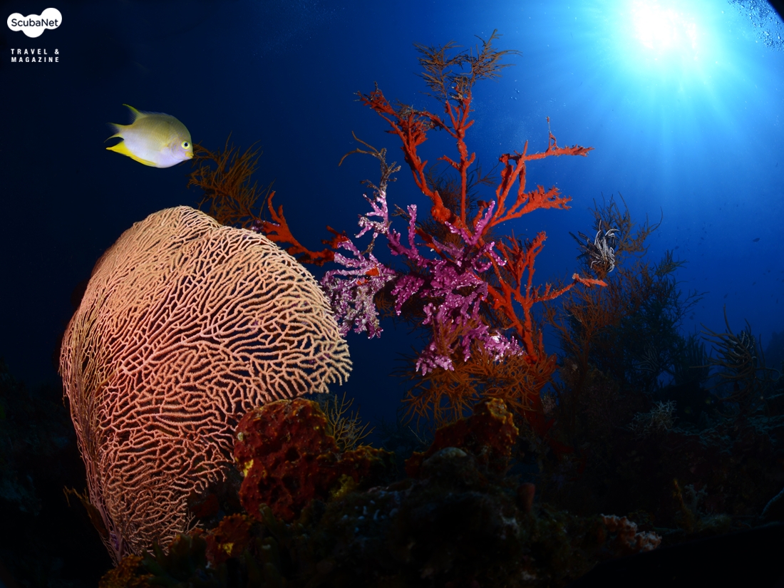 씨팬은 부채모양의 산호인데 씨팬 그 자체만을 촬영한다면 단순하여 그리 좋은 사진은 아닐 것이다. 피사체로써 씨팬을 선택할 시 주위와 비교하여 반사율이 높은 것이 좋고, 자연스러운 태양의 위치를 고려하고, 단순한 모양보다는 다이내믹한 느낌을 주는 모양, 무엇보다 중요한 것은 주위에 적당히 작은 물고기가 있는 곳을 찾는 것이 단순한 사진이 되는 것을 피하는 길이다.