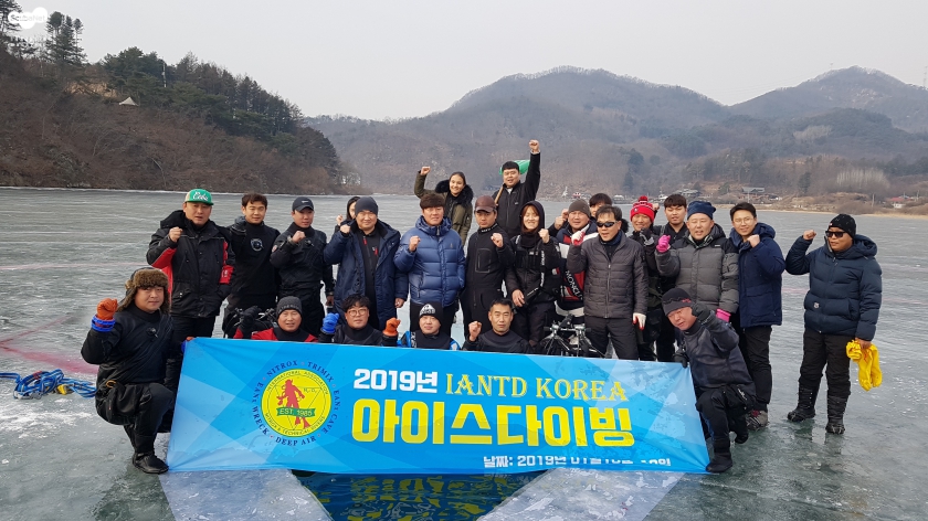 IANTD 코리아 아이스다이빙 행사IANTD 코리아는 2019년 1월 18일~19일 강원도 춘천시 강촌의 골든몽키워터파크에서 아이스다이빙 행사를 진행하였다. 18일 저녁에 모여 이론교육과 장비점검 등을 하고 19일 오전부터 아이스다이빙을 시작했다. 골든몽키워터파크는 여름철에 가족단위로 수상레저를 즐길 수 있는 규모 있는 업체인데 겨울철 사업모델로 아이스다이빙 등 축제를 기획하고 있어서 다이버들의 아이스다이빙 행사를 지원하고 있다. 넓은 천막 공간이 있어서 추운 날씨에도 바람을 피하며 다이빙을 준비하고, 식음료를 먹을 수 있었다.