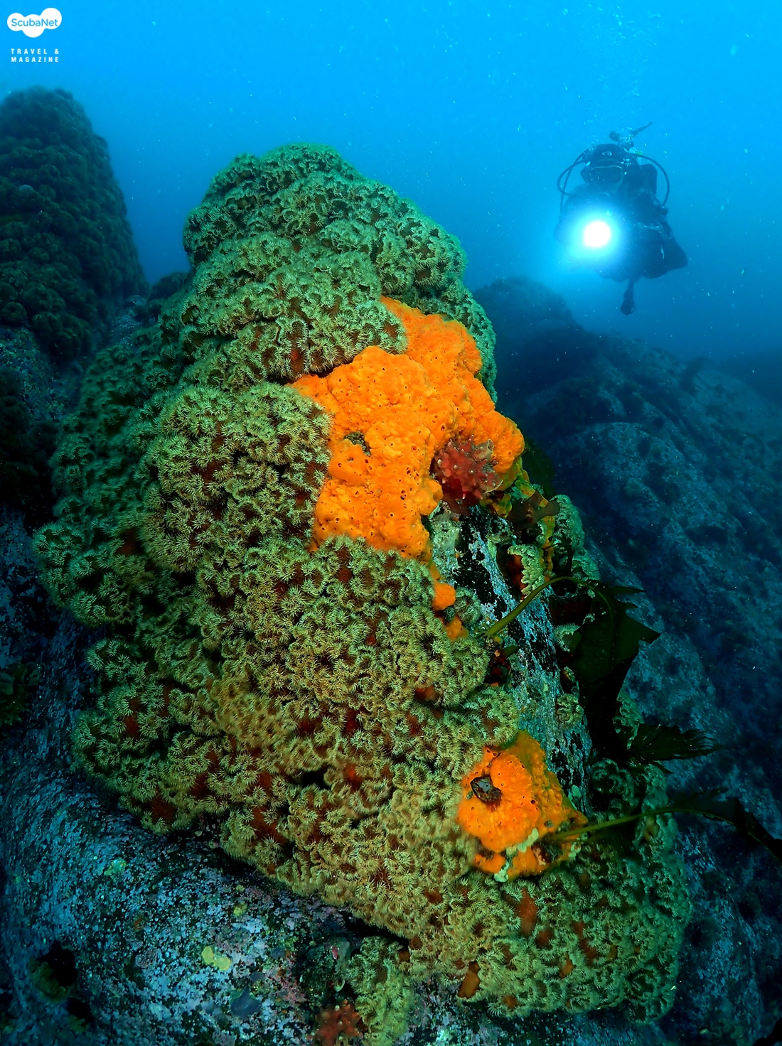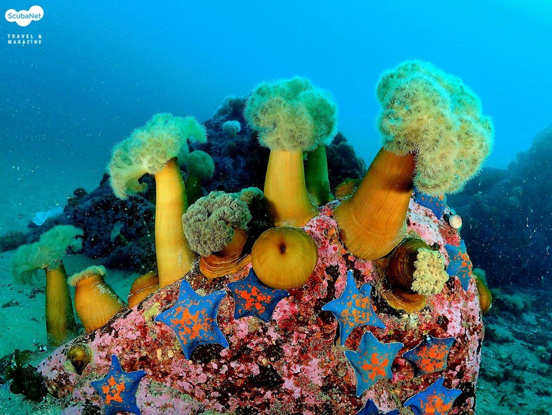 말미잘 포인트 봉우리를 장식하고 있는 섬유세닐말미잘 군락밤새 높은 파도와 차가운 바닷바람이 매섭다. 혹시나 다이빙이 안 될까 걱정을 했는데 아침 일찍 바다를 보니 다행히 파도는 잔잔하고 약간의 너울만 있었다. 좋아지는 날씨에 설레는 마음으로 다이빙 준비를 서두르면서 시야는 어떨까 살짝 궁금해진다.