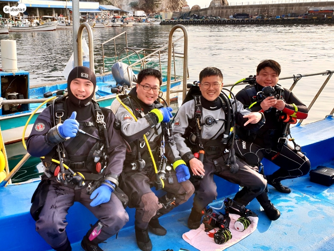 포인트 옆에 어민들이 쳐 놓은 그물에 걸린 도치어느새 30분 정도의 시간이 흐르니 다들 추운지 올라가자고 수신호를 한다. 입수했던 지점으로 돌아와서 부표에 연결된 줄을 잡고 상승을 준비를 한다. 천천히 상승하는데 아직도 사진을 찍고 있는 몇몇 다이버의 공기방울이 내 어깨를 스치며 무심히 지나간다. 그렇게 내 옆을 지나친 공기방울은 서서히 올라가면서 위로 퍼지고 마지막으로 수면에서 순간의 생을 마감하면서 작은 기포로 아스라히 사라져 나간다.
