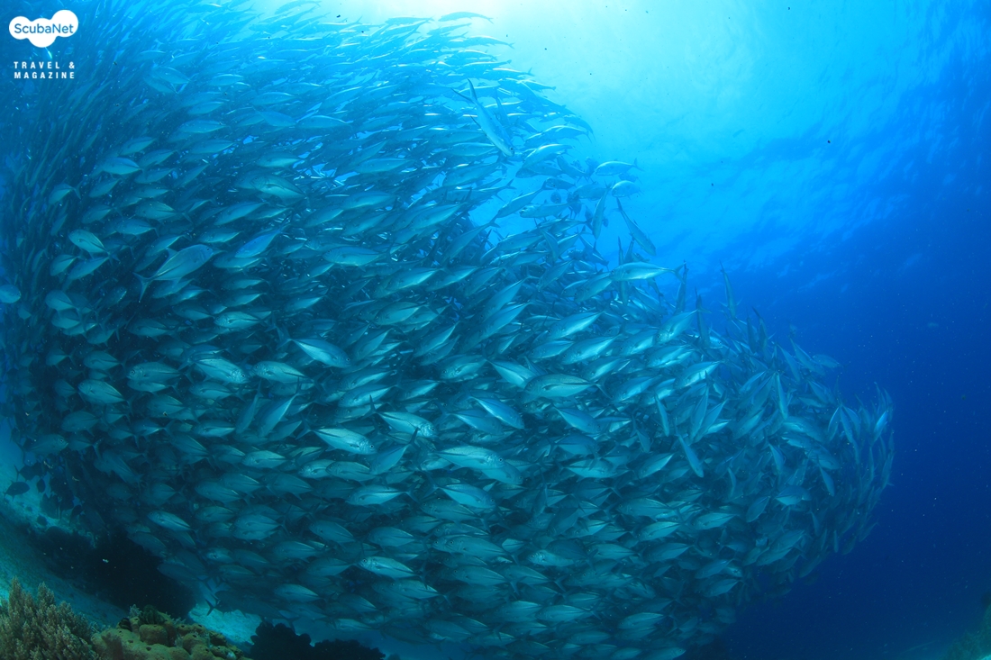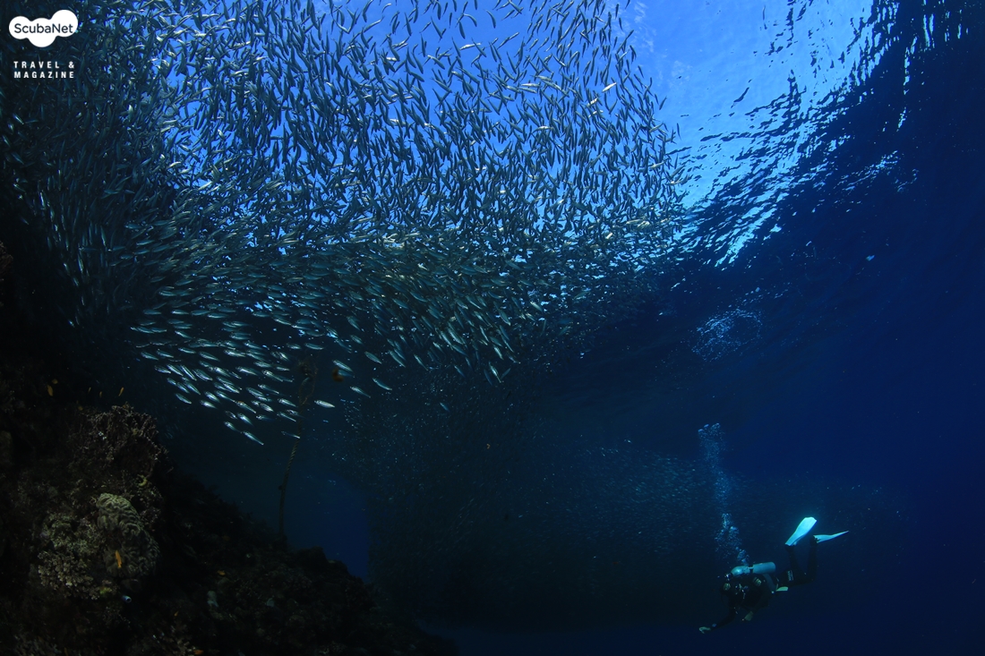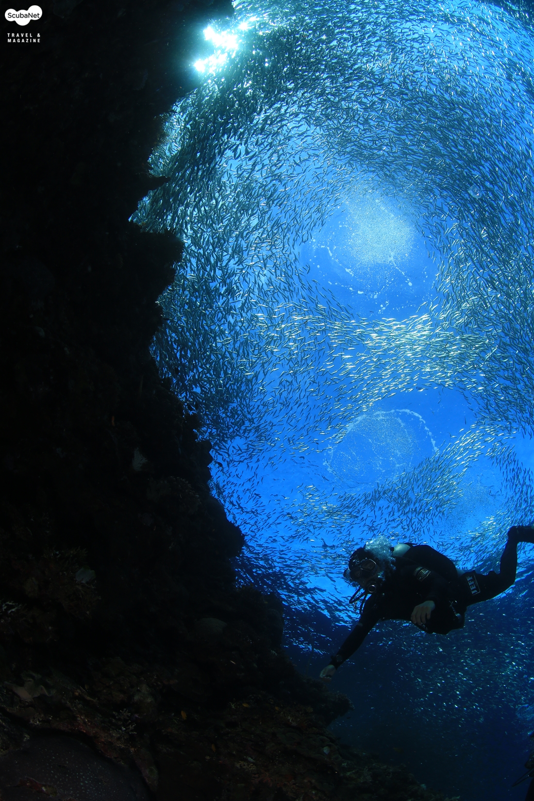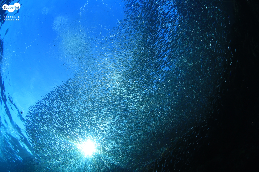 전갱이들과 함께 한 다이빙은 시간가는 줄 몰랐다 둘째 날 다이빙은 발리카삭 섬에서 오전 Cathedral, Diver’s Heaven, 오후 Black Forest 포인트에서 3회 진행하고, 숙소 앞 Napaling 포인트 야간까지 총 4회 일정으로 진행했다.
